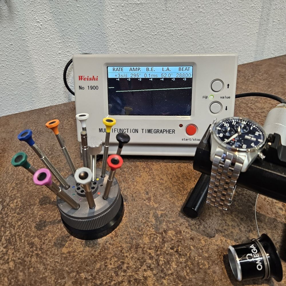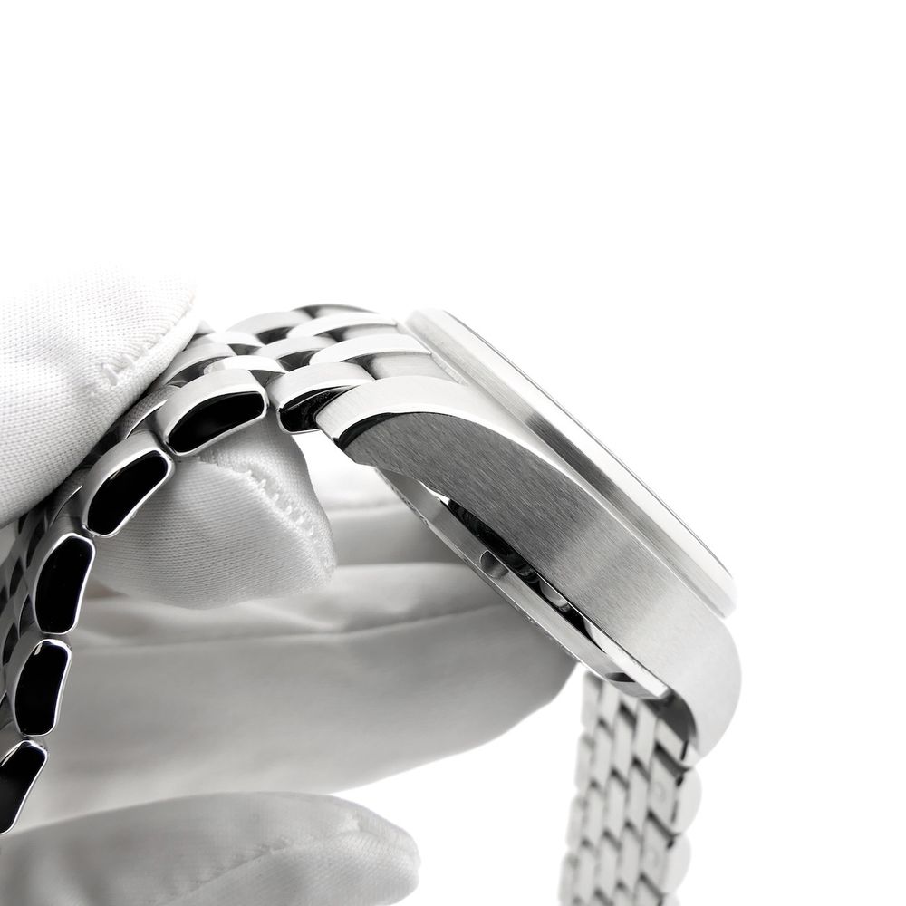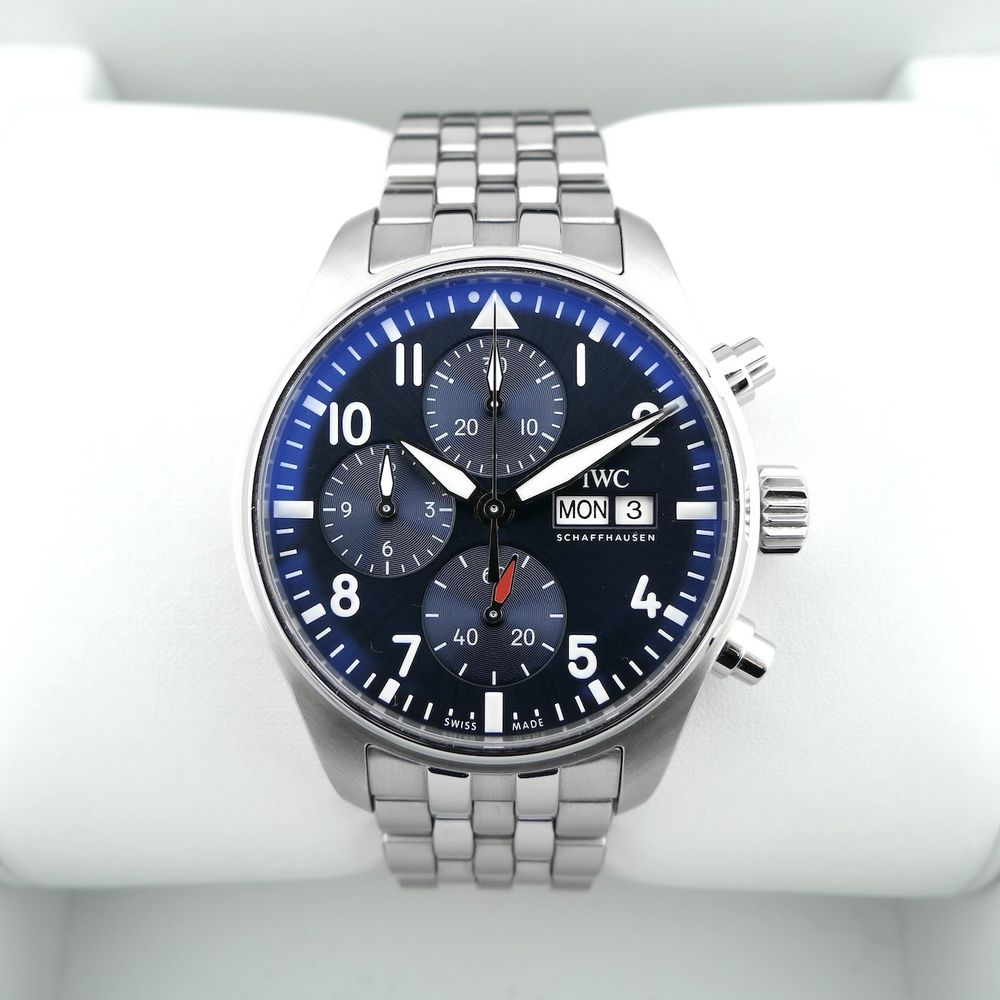 This is awesome! The IWC Pilot's Chronograph in the popular blue version. This is an impressive and stylish watch inspired by early Flieger movements. A staple in IWC's renowned Pilot's Watch collection, it offers a fresh and modern interpretation of the classic pilot's chronograph. The watch combines the robustness and functionality essential for pilots with a sleek and contemporary design. At 41mm, it's a perfect size for almost all men, and on the new IWC steel bracelet, it's a pleasure to wear. This watch is in excellent condition and comes as a beautiful full set from 2021. The current retail price of this model is a whopping €9,550. The IWC Pilot chronograph watch from the current collection, featuring the latest, high-quality manufacture Cal. 69385 movement. This beautiful IWC Pilot chronograph from 2021 is truly stunning and a major upgrade from its predecessors. IWC Pilot watches are inspired by early WWII aviator watches. They are high-quality and recognizable tool watches with a rich history. The Pilot series is one of IWC's longest-running models. This model features a beautifully detailed blue dial with applied indices, exquisitely finished and typically IWC. The signature IWC crown is beautifully signed. The sapphire crystal is double-coated with anti-reflective coating, as only IWC can achieve, making the dial so sharp and detailed that it truly pops off your wrist. The case houses a high-quality in-house automatic movement, fully upgraded by IWC and bearing Cal. 69385. The movement, like the watch itself, is in excellent condition. It winds smoothly, all functions work flawlessly, and the watch runs extremely accurately. We measure an amplitude of 293 degrees and a maximum deviation of 3 seconds per 24 hours. The IWC steel bracelet is a true work of art, meticulously crafted and finished to a very high standard. It also features the convenient EasyX Change System and a superb, infinitely variable fine-adjustment clasp. The strap is beautifully finished and wears wonderfully. It comes with links that fit wrists of up to approximately 19cm. This watch comes as a beautiful full set from 2021: IWC box, outer box, travel case, IWC warranty card, manual, IWC tool, and booklets. In addition, our in-house warranty report and a 1-year warranty.