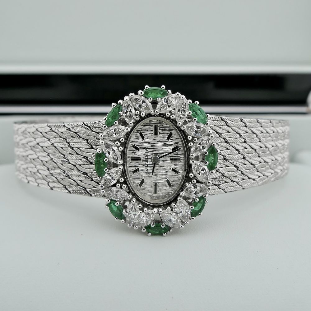 Juvania Geneva 'Cocktail Watch'; 18k white gold women's watch with diamonds and sapphires