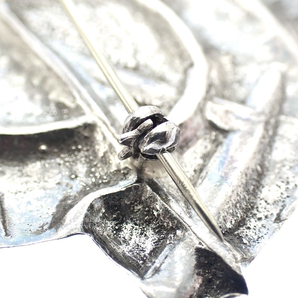 Large silver artistic brooch with amethyst | With gold plate