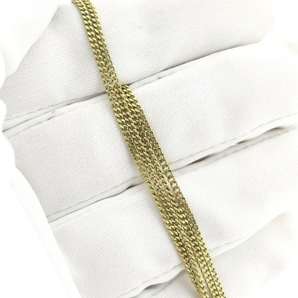 Long gold curb link necklace. The links are 1.7 mm wide and the necklace can be worn with or without a pendant. A classic and timeless piece. The necklace closes with a spring ring and is crafted from 14-karat yellow gold (585/1000).
