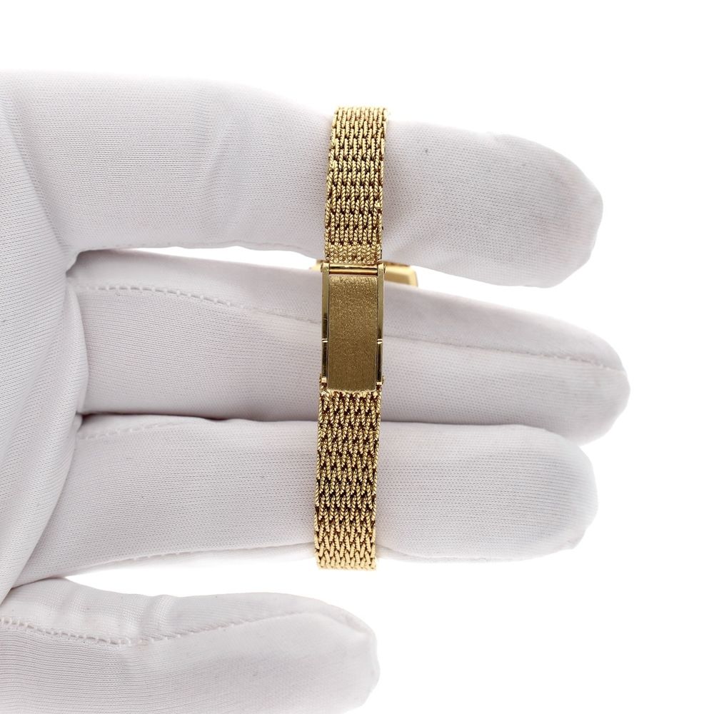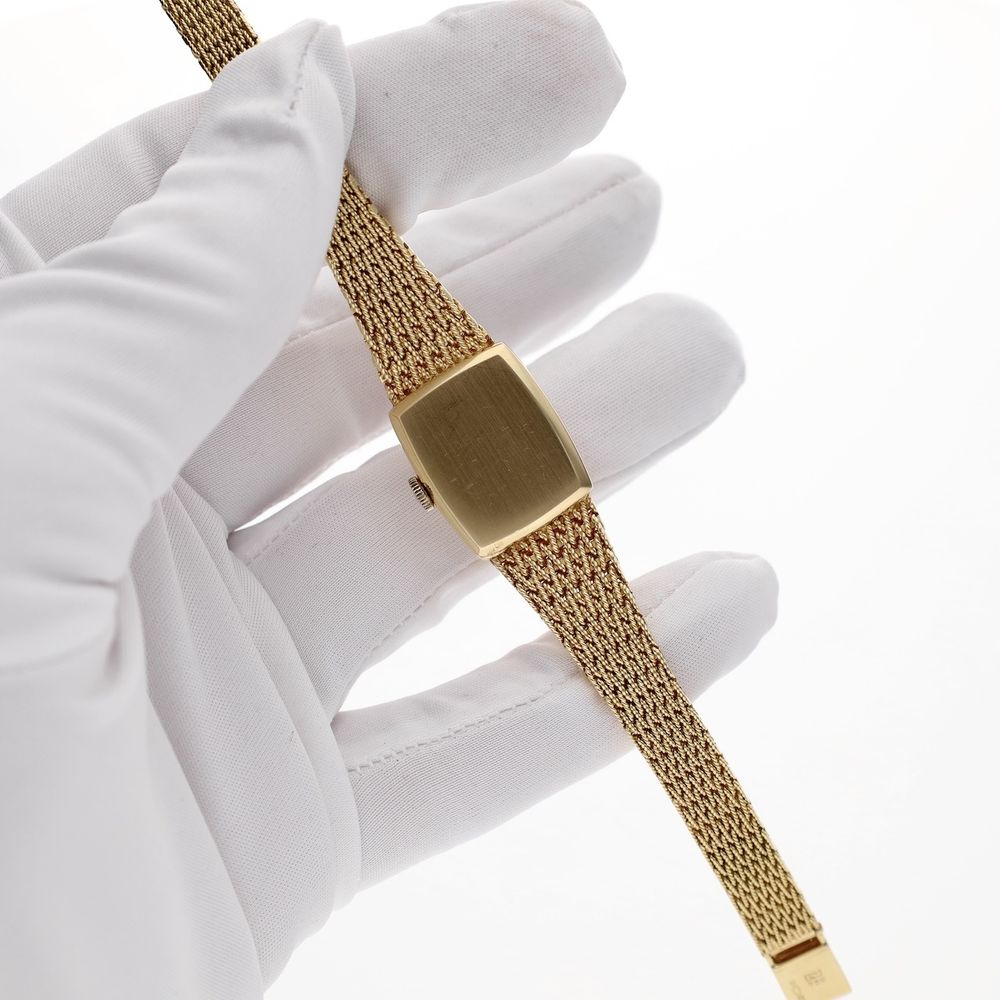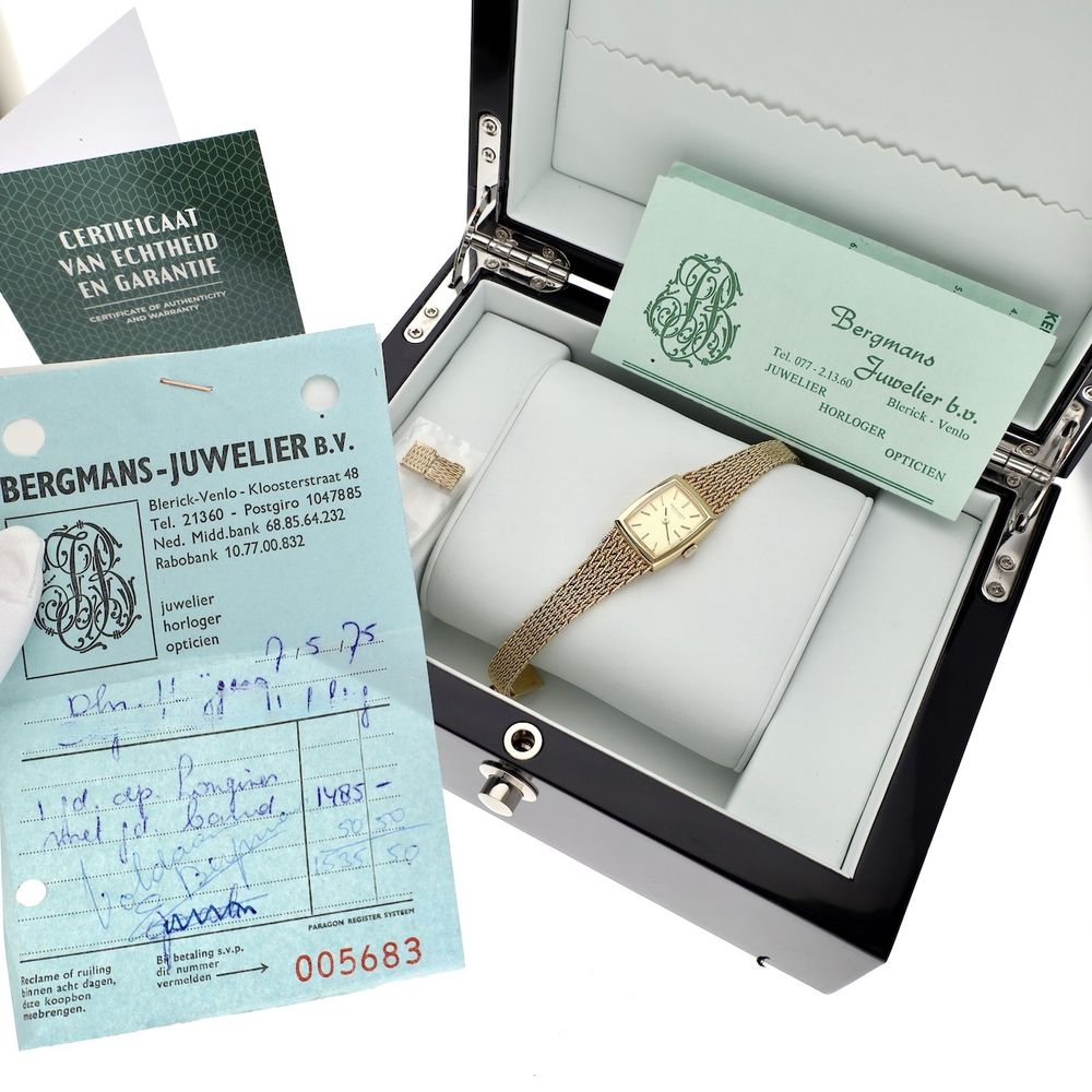 A one-of-a-kind, this vintage 18-karat gold Longines women's dress watch. This beautiful vintage Longines watch, crafted in 18k yellow gold, takes you back to the glory days of Longines. This gold watch with its elegant 20mm case is perfect for formal occasions. It's in fantastic condition, uniquely good, and comes with the original warranty papers and invoice from 1975! This is also the reason we don't sell this beautiful watch; there's absolutely no other one like it, and the mechanical movement runs perfectly! The 18-karat yellow gold Milanese bracelet is a true work of art, beautifully crafted and refined. It's also very solid and beautifully balances the watch. The bracelet features a folding clasp with a safety lock. The bracelet fits wrists of up to approximately 16cm. Our goldsmith can adjust the bracelet to the correct size (two additional strap sections of approximately 0.8cm are added). The whole thing weighs just over 38 grams, so for a relatively small amount above the current gold value, you have a unique item with a high intrinsic (gold) value. Longines, Swiss-made watches since 1832. And since the beginning, they have been creating exceptional timepieces. Today, the Longines Classic Collection is the perfect illustration of classic, high-quality, and versatile. With a high-quality Swiss-made automatic movement, you'll also be on time. The movement runs excellently and accurately. This watch comes with: a luxury in-house box, outer box, Longines warranty papers from 1975, original invoice from 1975, and an in-house warranty report with a 1-year warranty.