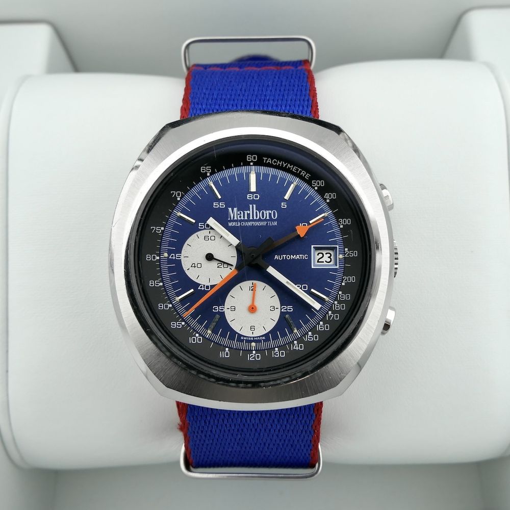 Marlboro World Championship Team 9801-72; Vintage Lemania 1341 chronograph men's watch