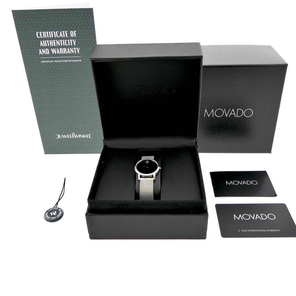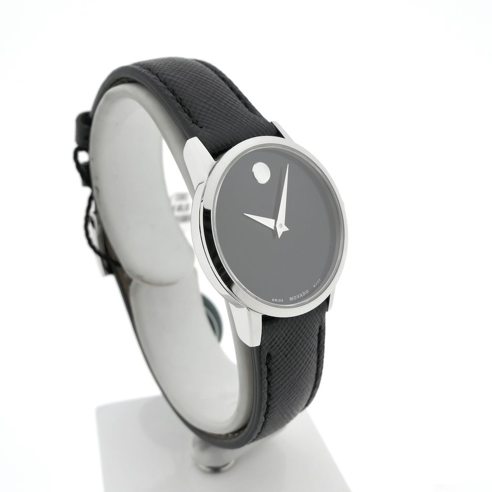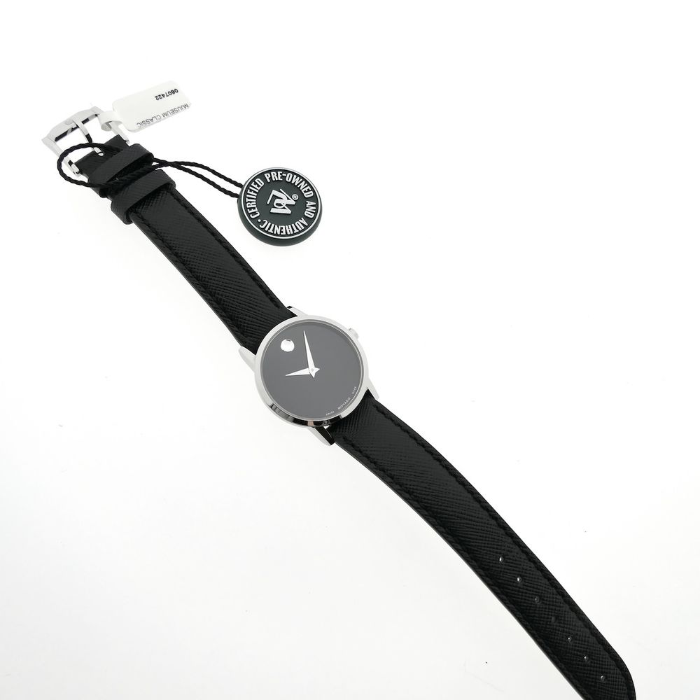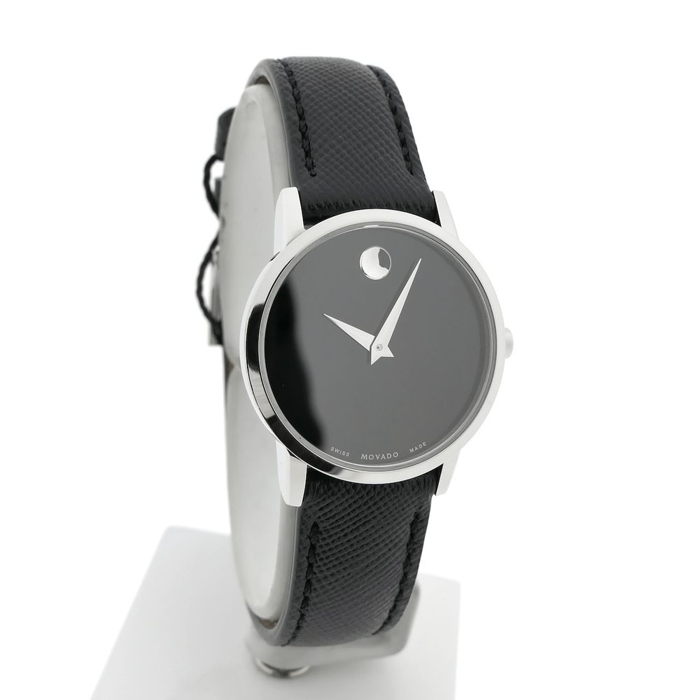 Movado Museum Classic; Steel women's watch with black dial and leather strap; 0607220