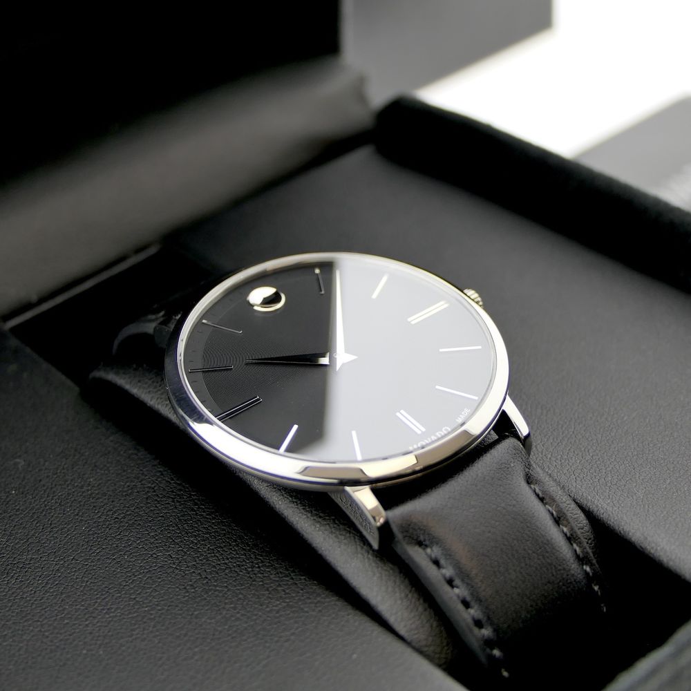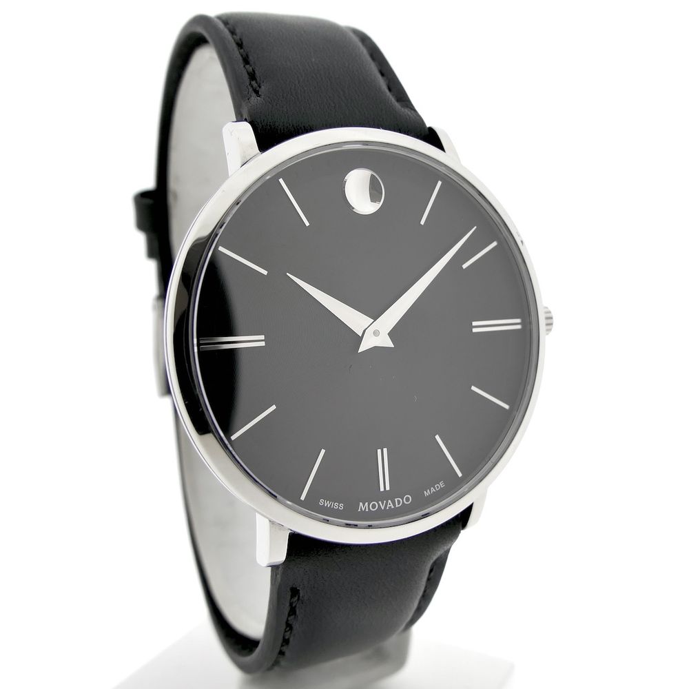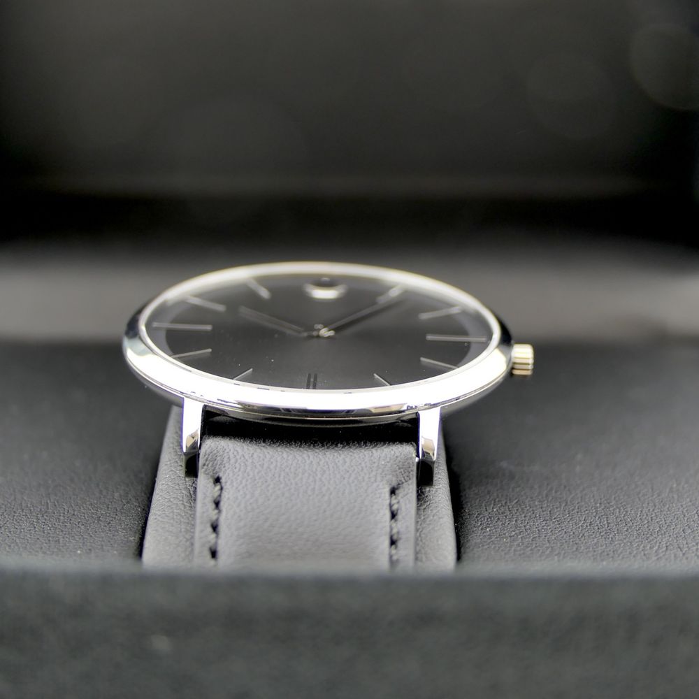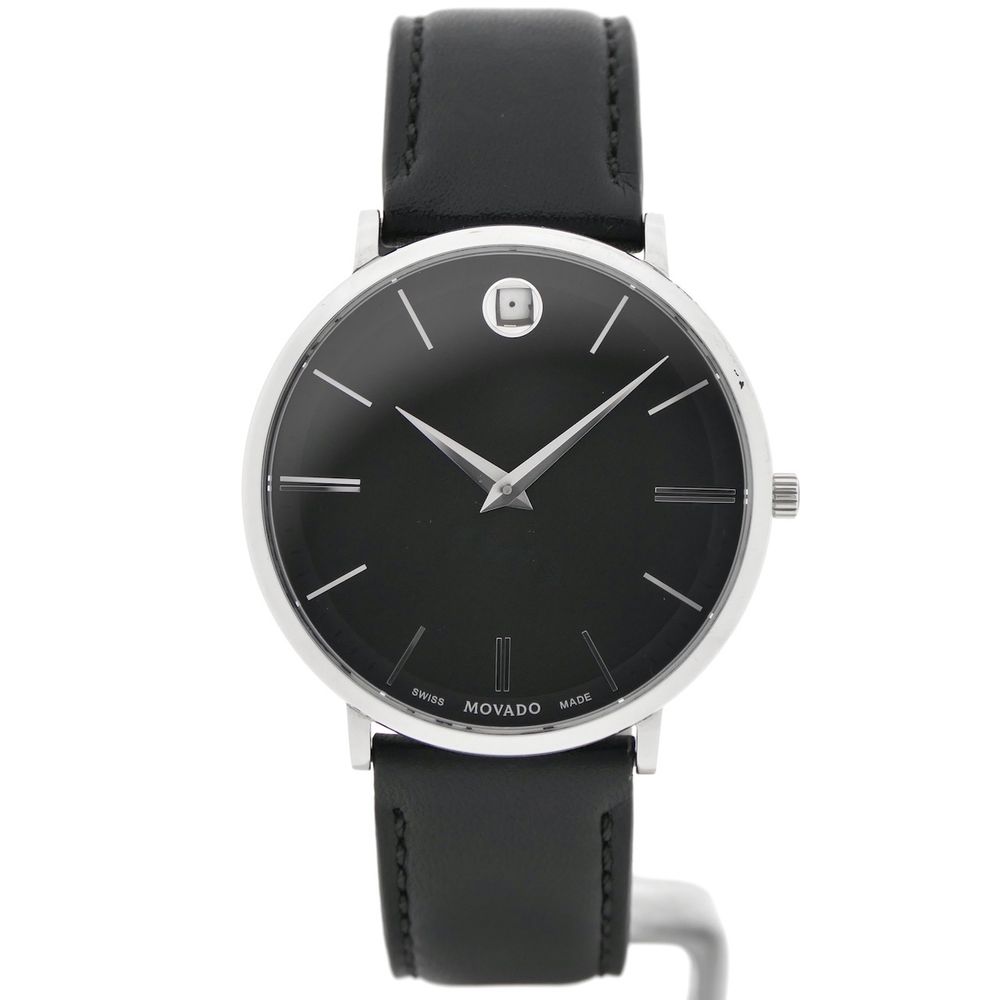 Movado Ulta Slim; Steel men's designer watch with gray dial; 0607086