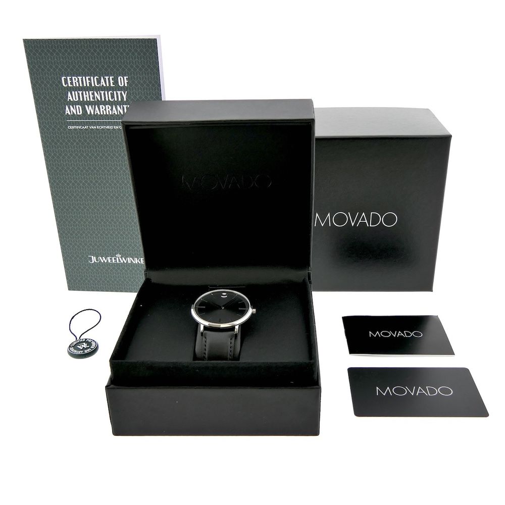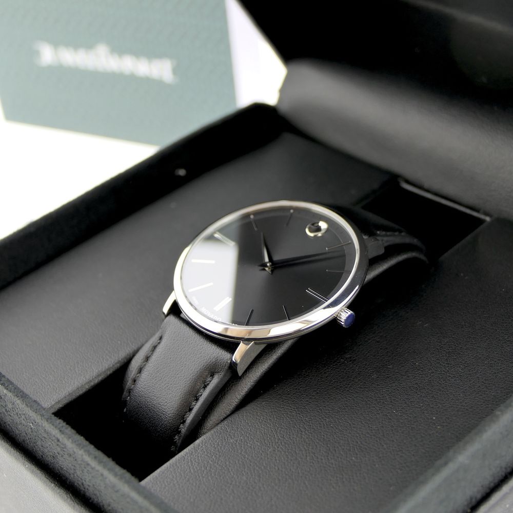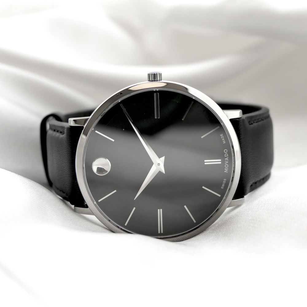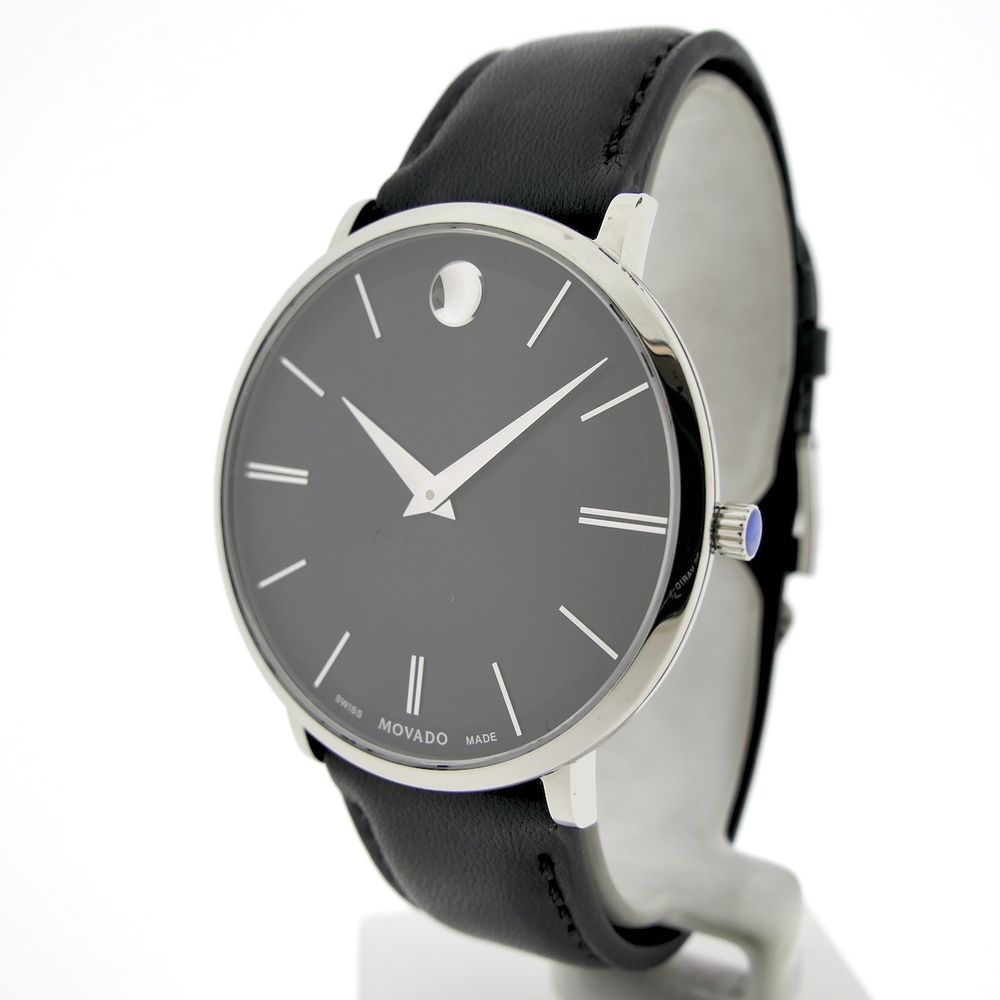 Movado Ulta Slim; Steel men's designer watch with gray dial; 0607086