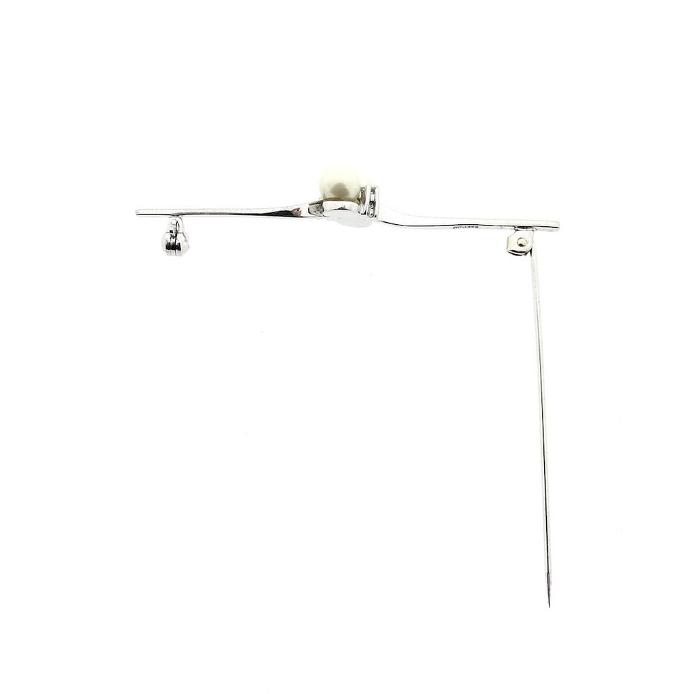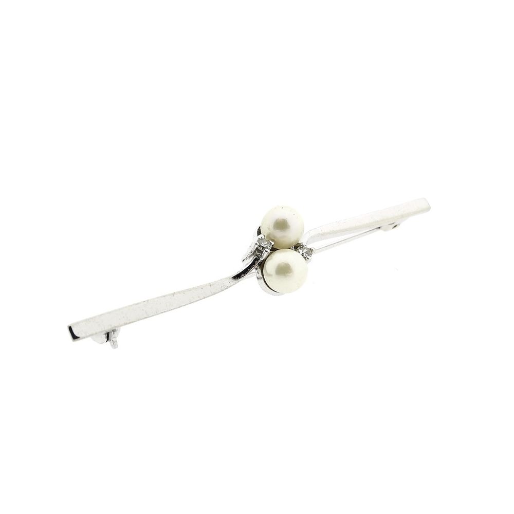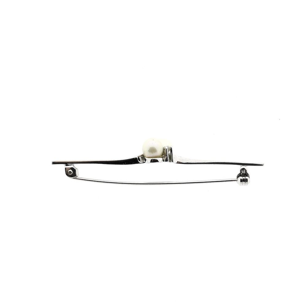 Narrow white gold brooch with pearl and diamonds; 0.06 ct.