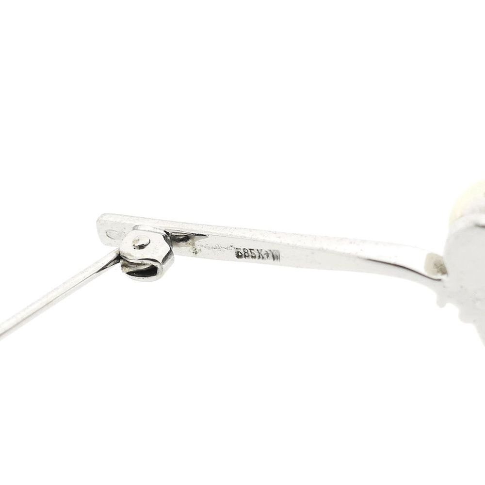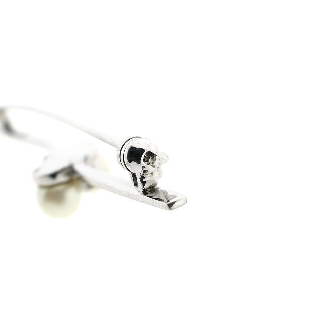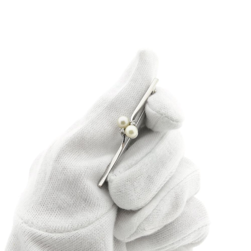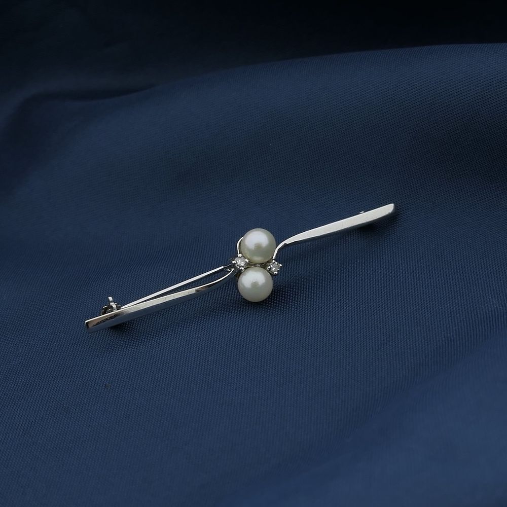 Narrow white gold brooch with pearl and diamonds; 0.06 ct.