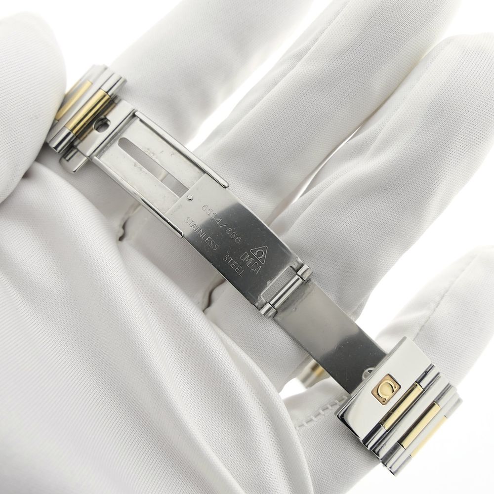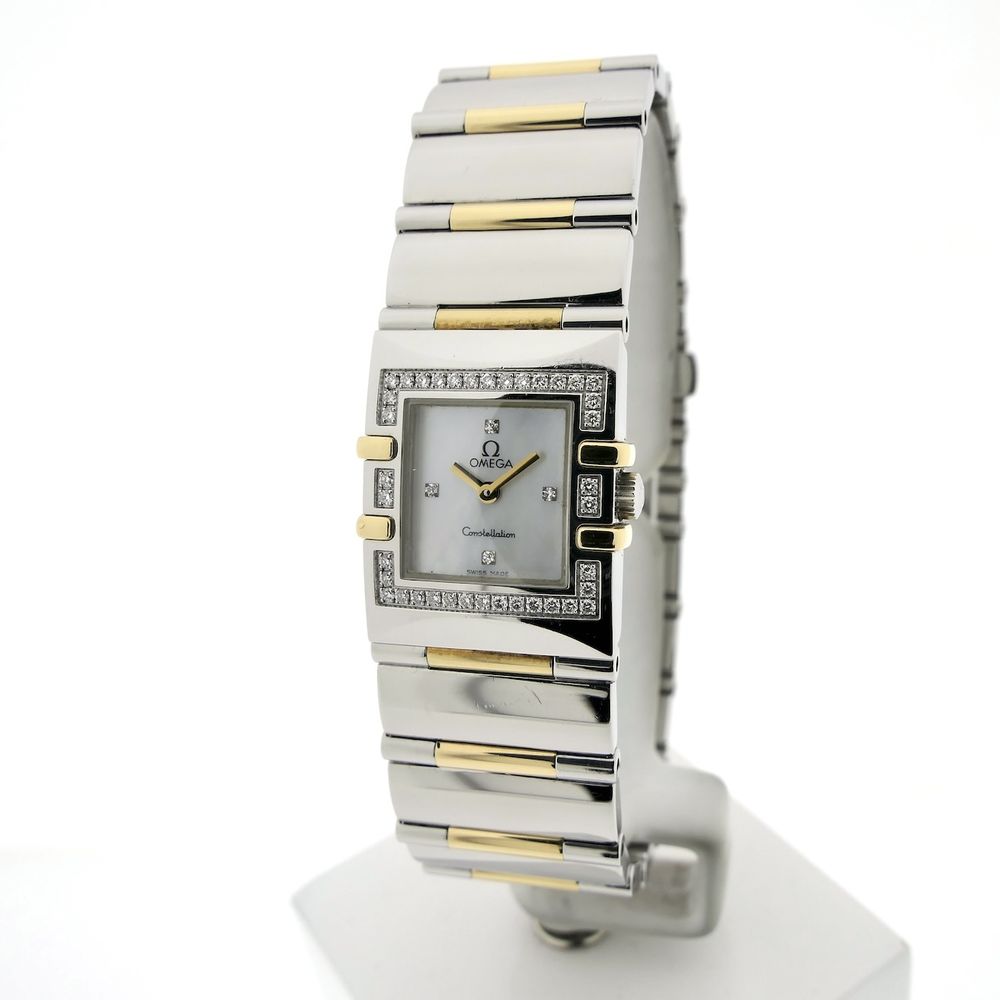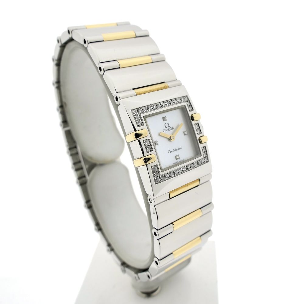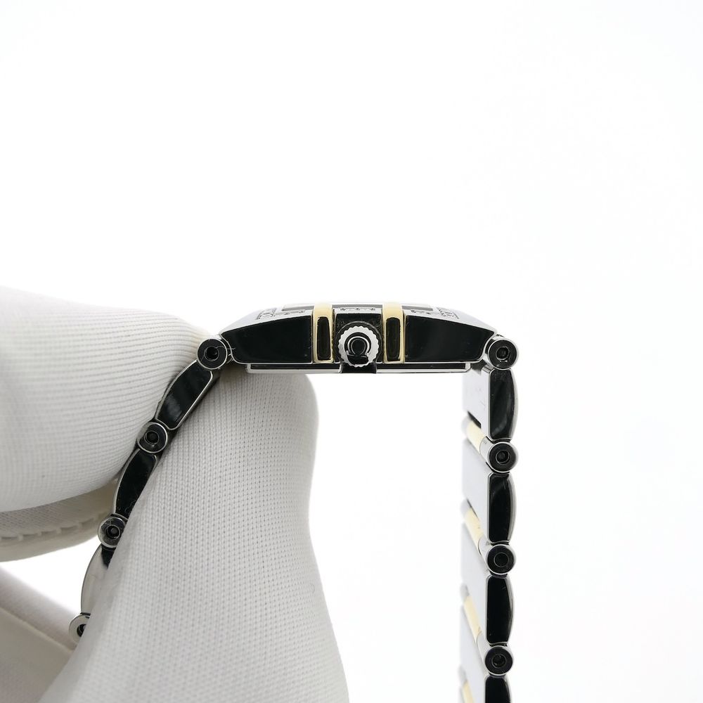 Omega Constellation Quadra 'Half-Bar'; 18k gold/steel women's watch with diamonds