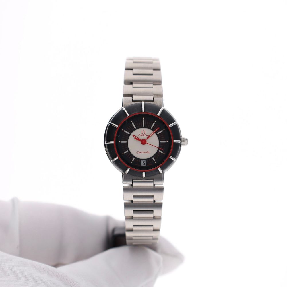 Inside, it operates a Swiss Made Omega quartz movement, renowned for its accuracy and reliability. The watch is equipped with a new battery, making it ready for use immediately.