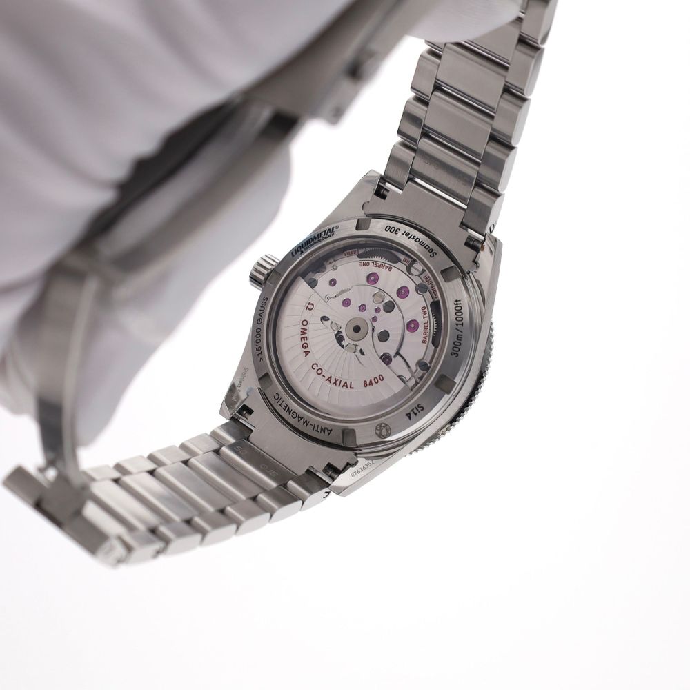 Inside is the impressive Omega Caliber 8400 manufacture movement. This automatic caliber is METAS Master Chronometer certified, which ensures exceptional precision, high antimagnetic resistance, and reliability under all conditions. The movement runs like new and extremely precisely.