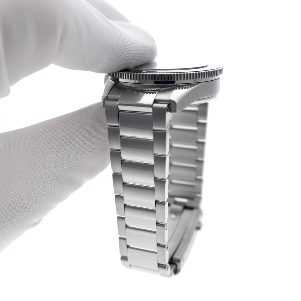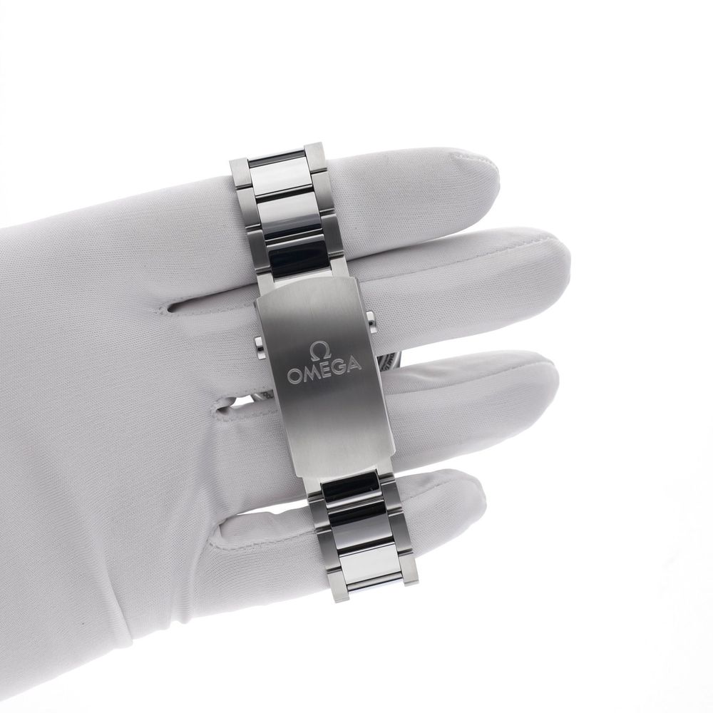 The original Omega steel bracelet features a practical push quick-adjustment in the clasp, providing optimal wearing comfort. The bracelet fits wrists up to approximately 20cm and is delivered with extra links.