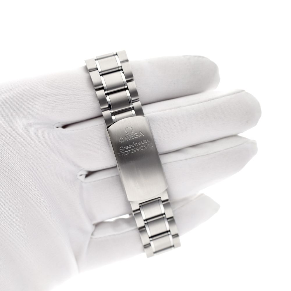What a cool Speedmaster, already vintage, being over 25 years old. A beautiful (and affordable) Omega Speedmaster Broad Arrow "re-edition 1957" from 2000. We don't see this watch often, which is a shame because it's a beautiful Speedmaster variant in very good condition and comes as a beautiful full set. This specific reference to the Speedmaster Broad Arrow, released from 1997 onwards, was produced in honor of the Speedmaster's 40th anniversary and is therefore considered a very early reissue or re-edition. This watch is reminiscent of the first Speedy the world ever knew, the Speedmaster CK2915, and is best characterized by its resemblance to its 1957 predecessor. This Omega Speedmaster Broad Arrow is the perfect daily, truly recognizable as a Speedmaster and a beautifully finished watch with high-quality details, a nice variation on the Professional Moonwatch. The beautiful glossy black dial with polished, applied Omega logo, like the models from the 1960s, is a real eye-catcher. It's striking that this model always lags behind the price of other Omega chronograph/Speedmaster models, while it's truly a fantastic alternative that's in no way inferior. The Omega steel bracelet on this watch is also in very good condition and fits wrists up to approximately 18cm. We can optionally supply a beautiful Moratello leather strap (at no extra cost) so you can also wear this watch on larger wrists or for a bit of variety. This watch, dating from 2000, is in very good condition and comes with an Omega warranty card, manual, and booklets in an Omega leather box from the 1990s. The hands show a light patina, which is somewhat normal for its age. Overall, everything is in very good condition, especially considering its age. This Speedmaster Broad Arrow, like regular Speedmaster models, is equipped with a manual Omega caliber 1861 movement. A legendary movement that runs perfectly and very accurately. This watch comes on the original steel Omega Speedmaster bracelet with all links, suitable for wrists up to approximately 18.5cm. The strap, like the watch itself, is in excellent condition, and we can, of course, customize it. This watch comes with an original Omega leather box, an Omega warranty card from 1999, manual booklets, and an in-house warranty report with a 1-year warranty.