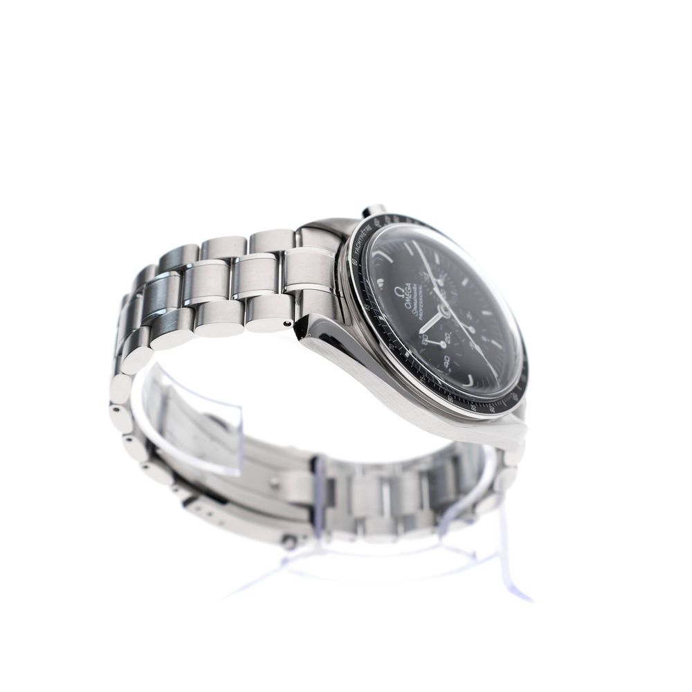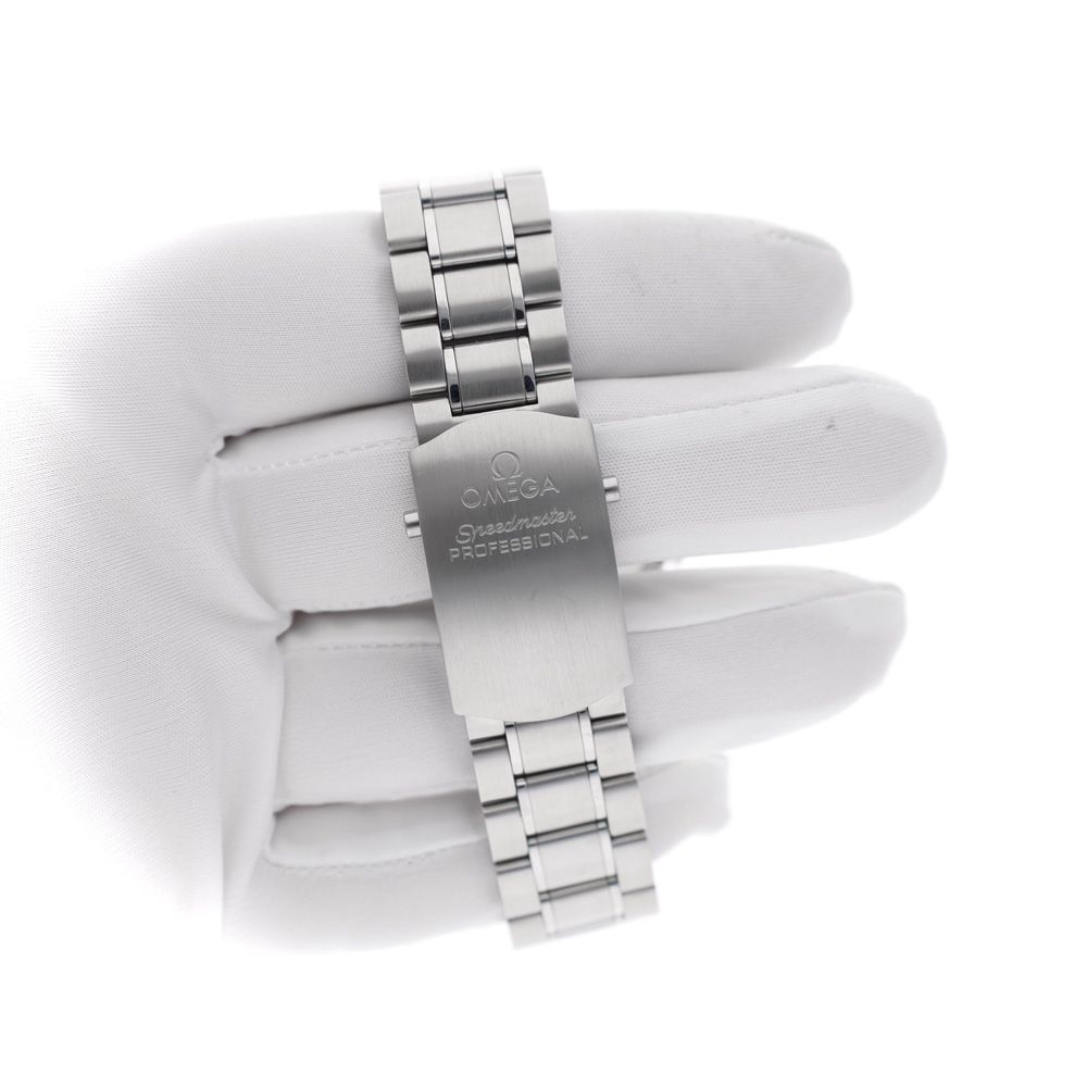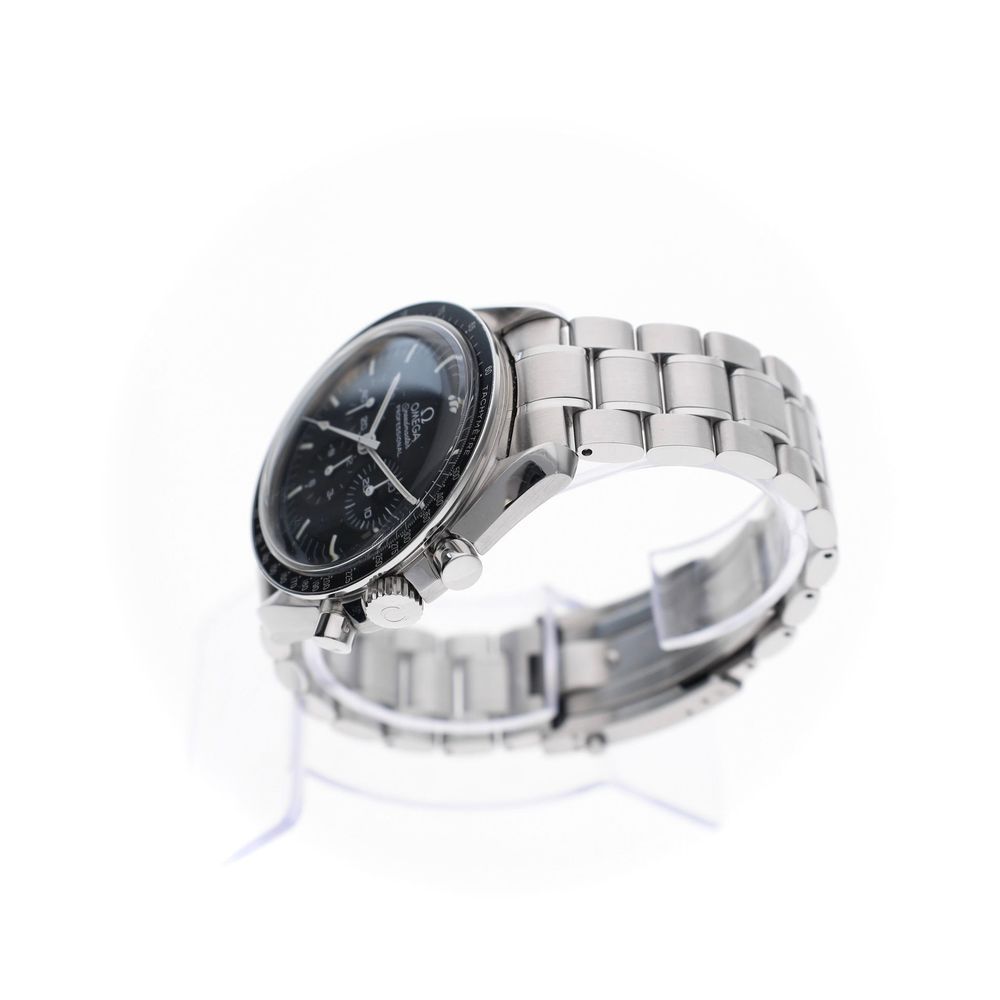 With a case diameter of 42mm, this watch has the iconic proportions that have made the Speedmaster world-famous. The timeless design with a black dial, contrasting subdials, and tachymeter bezel makes this model instantly recognizable.