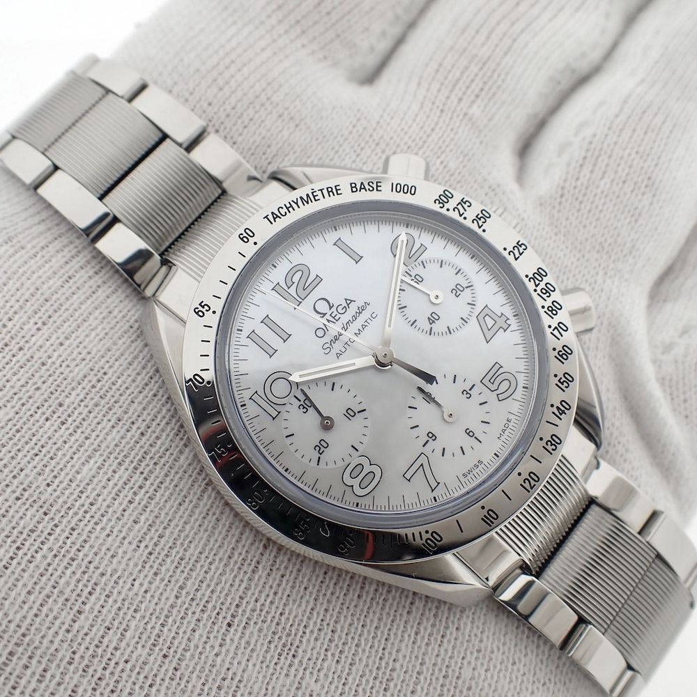 Omega Speedmaster Reduced; Chronograph watch with mother-of-pearl dial