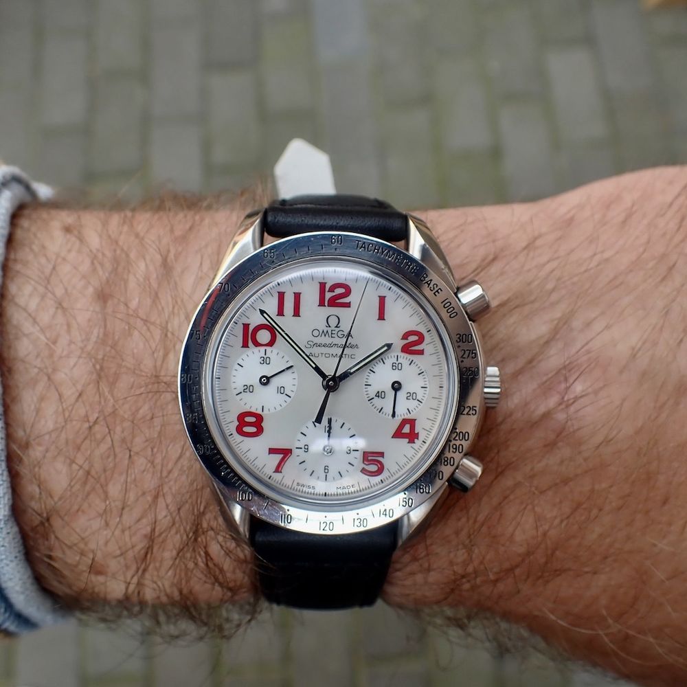 Omega Speedmaster Reduced; Chronograph watch with mother-of-pearl dial