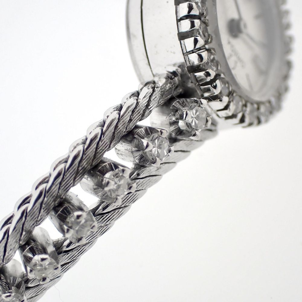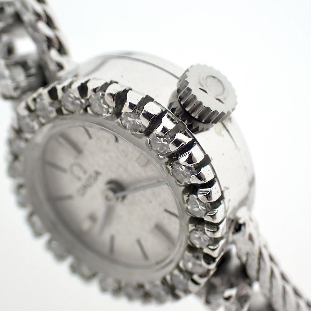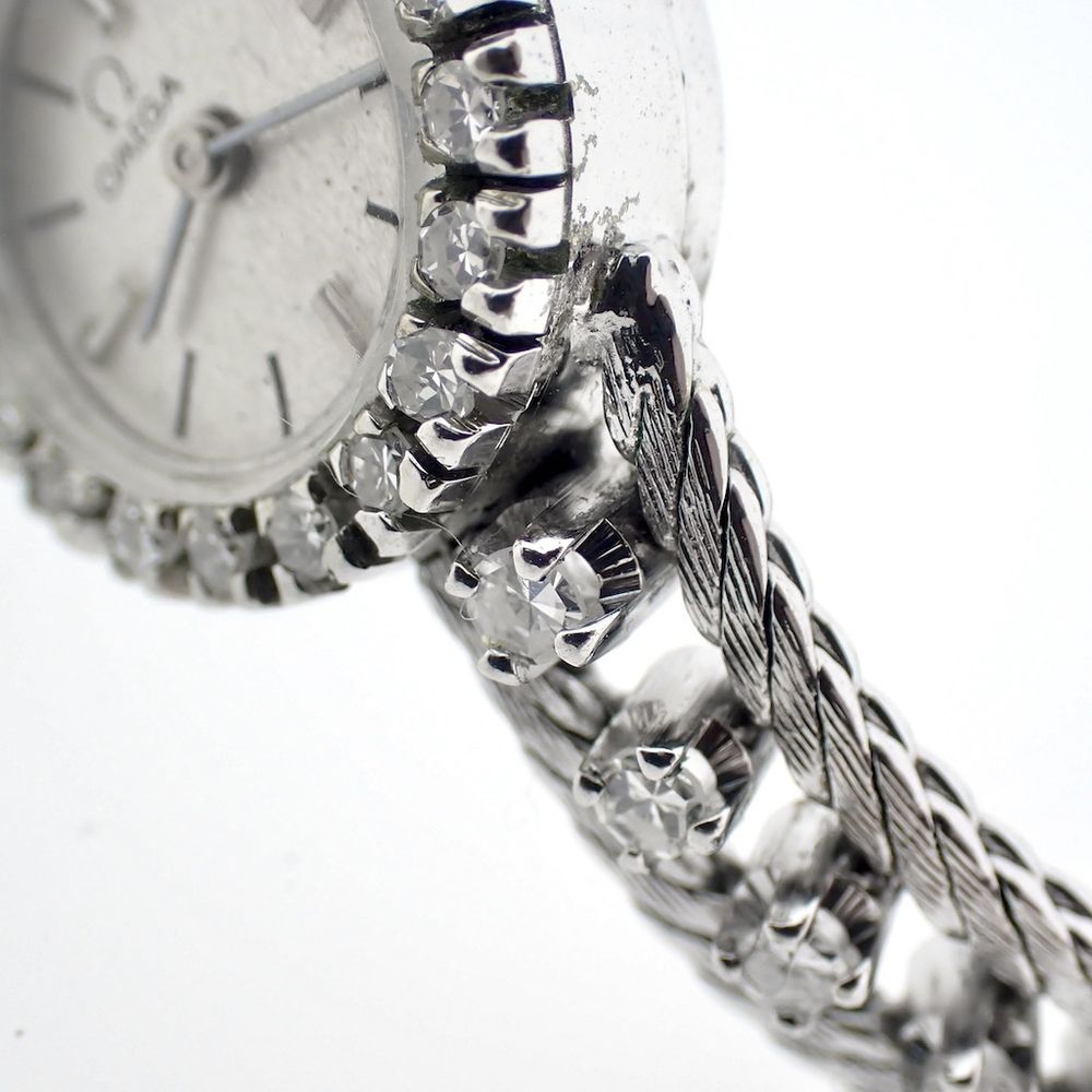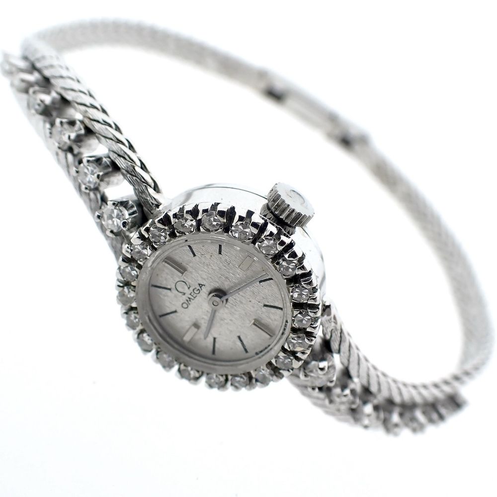 Omega vintage dress watch; 18k white gold women's watch with diamonds