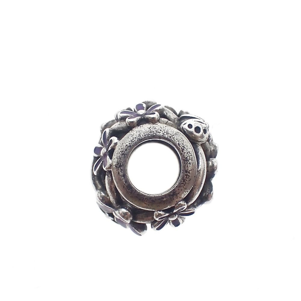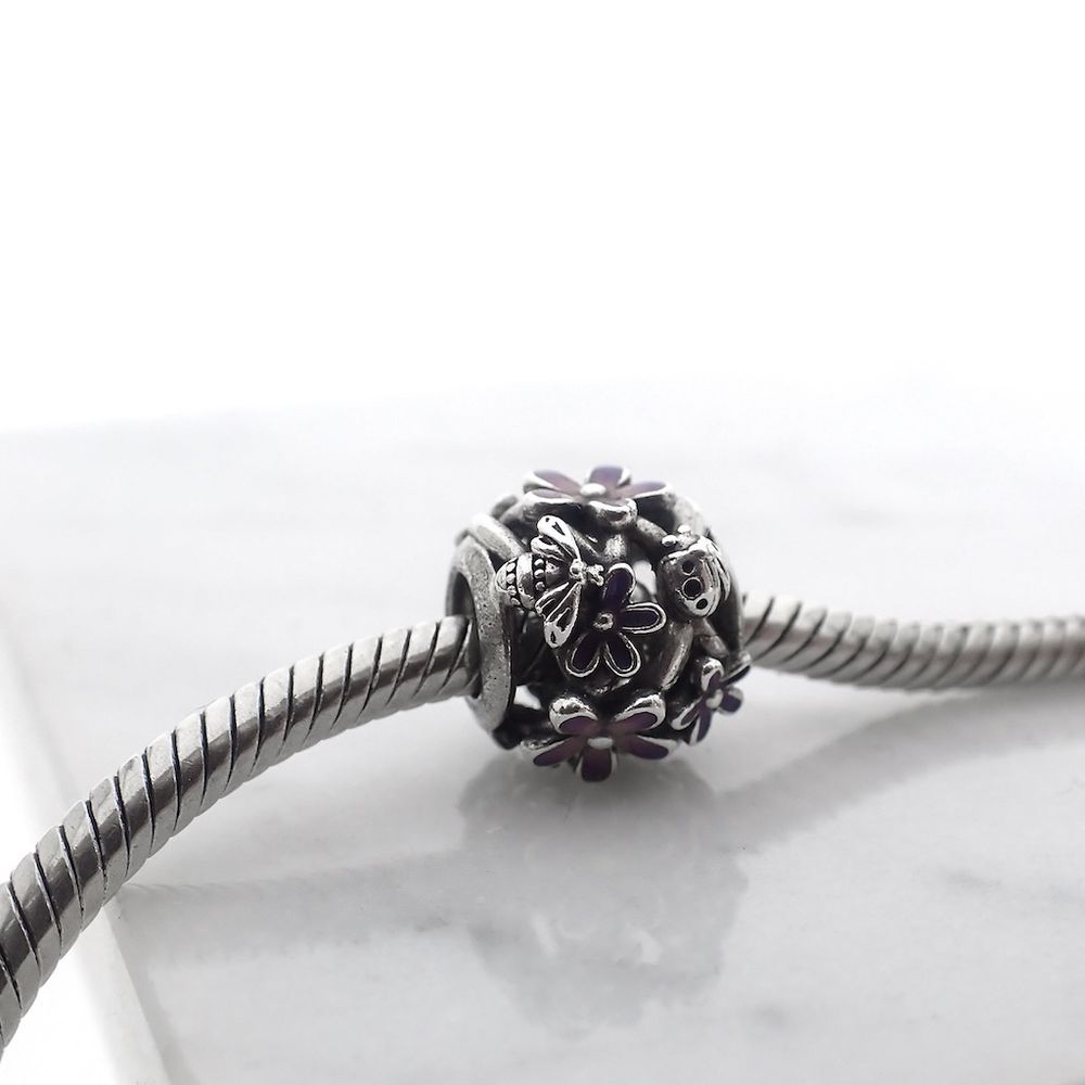 Pandora charm; Silver; Purple Daisy