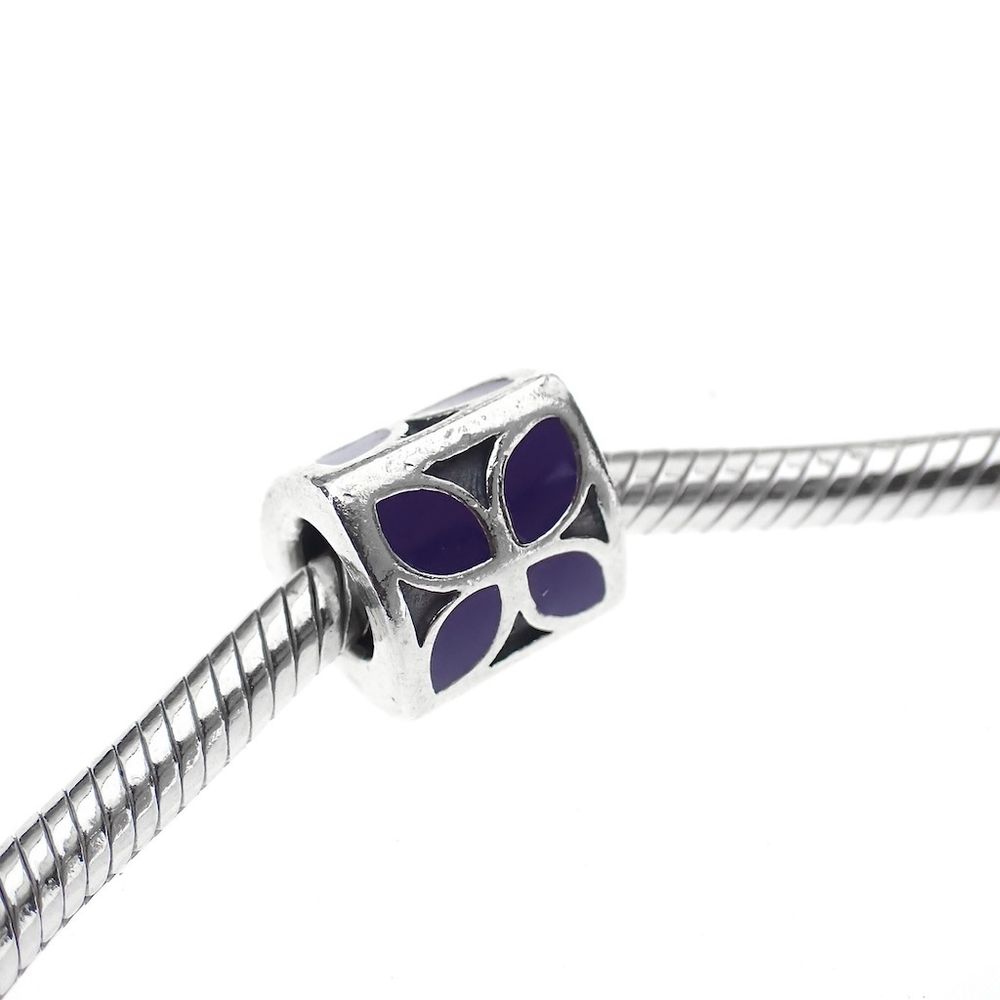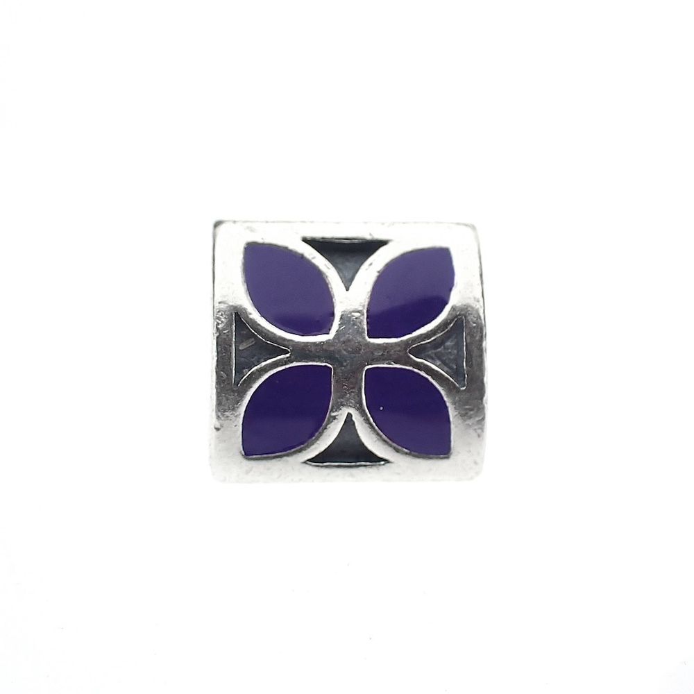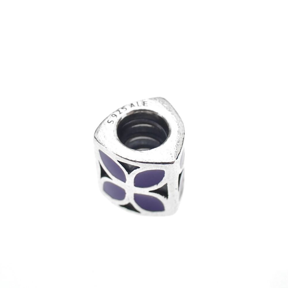 Pandora charm; Silver; Purple Flower