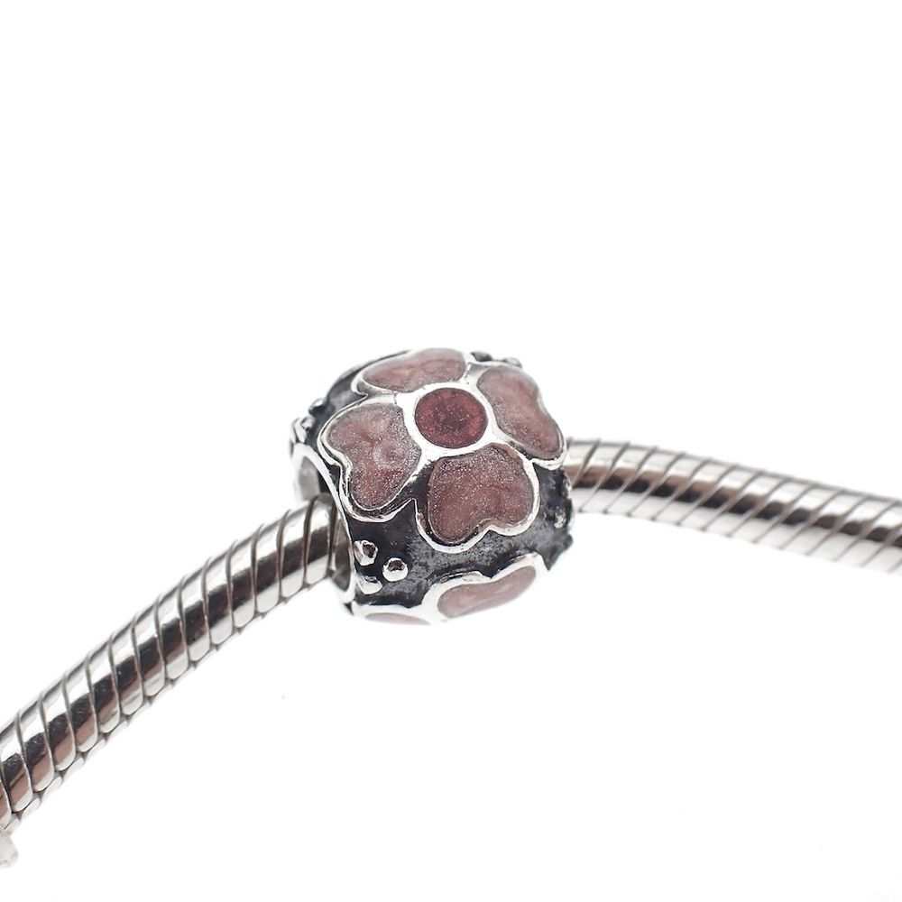 Pandora charm; Silver; Red Daisy