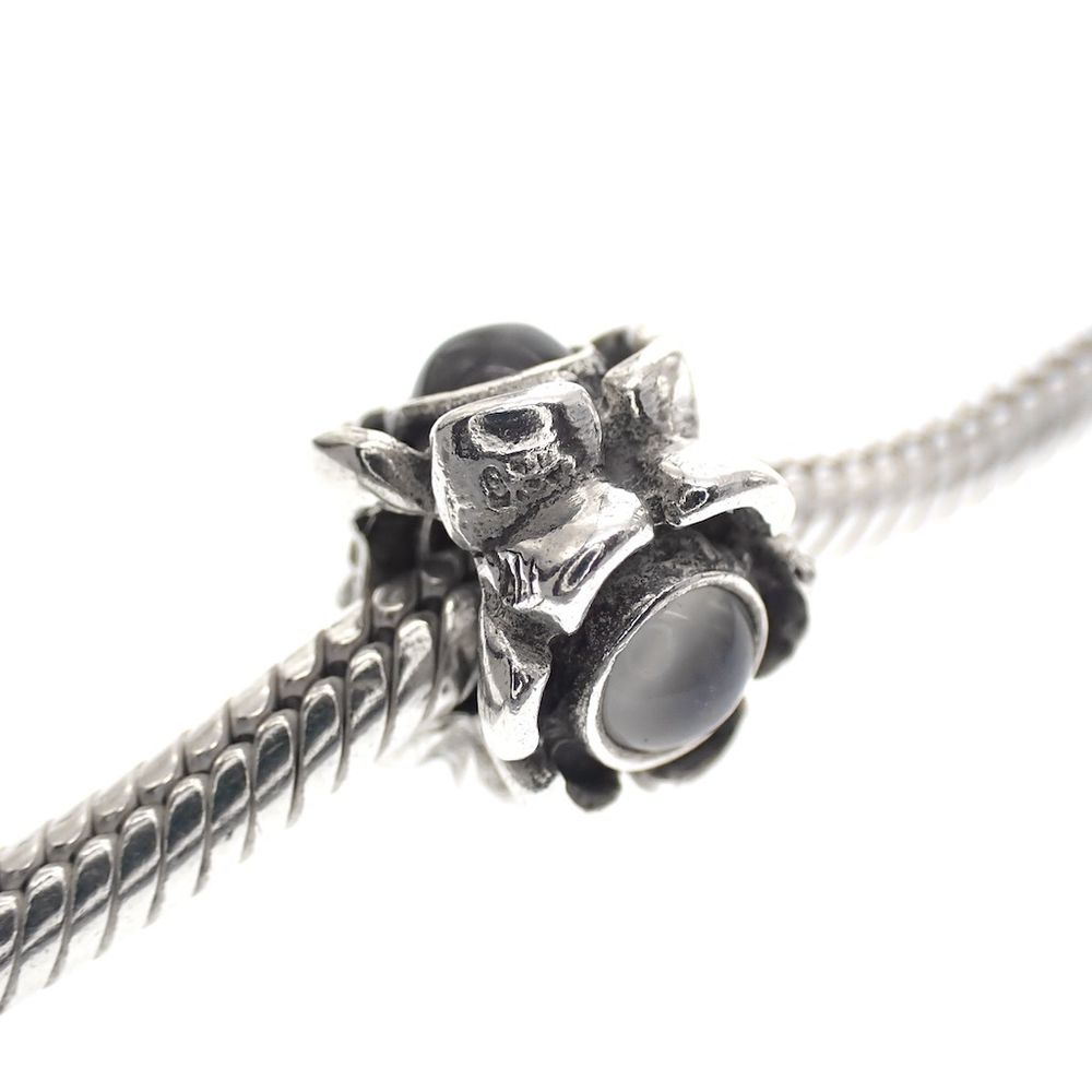 Pandora charm; Silver; Silver Flower Charm with moonstones