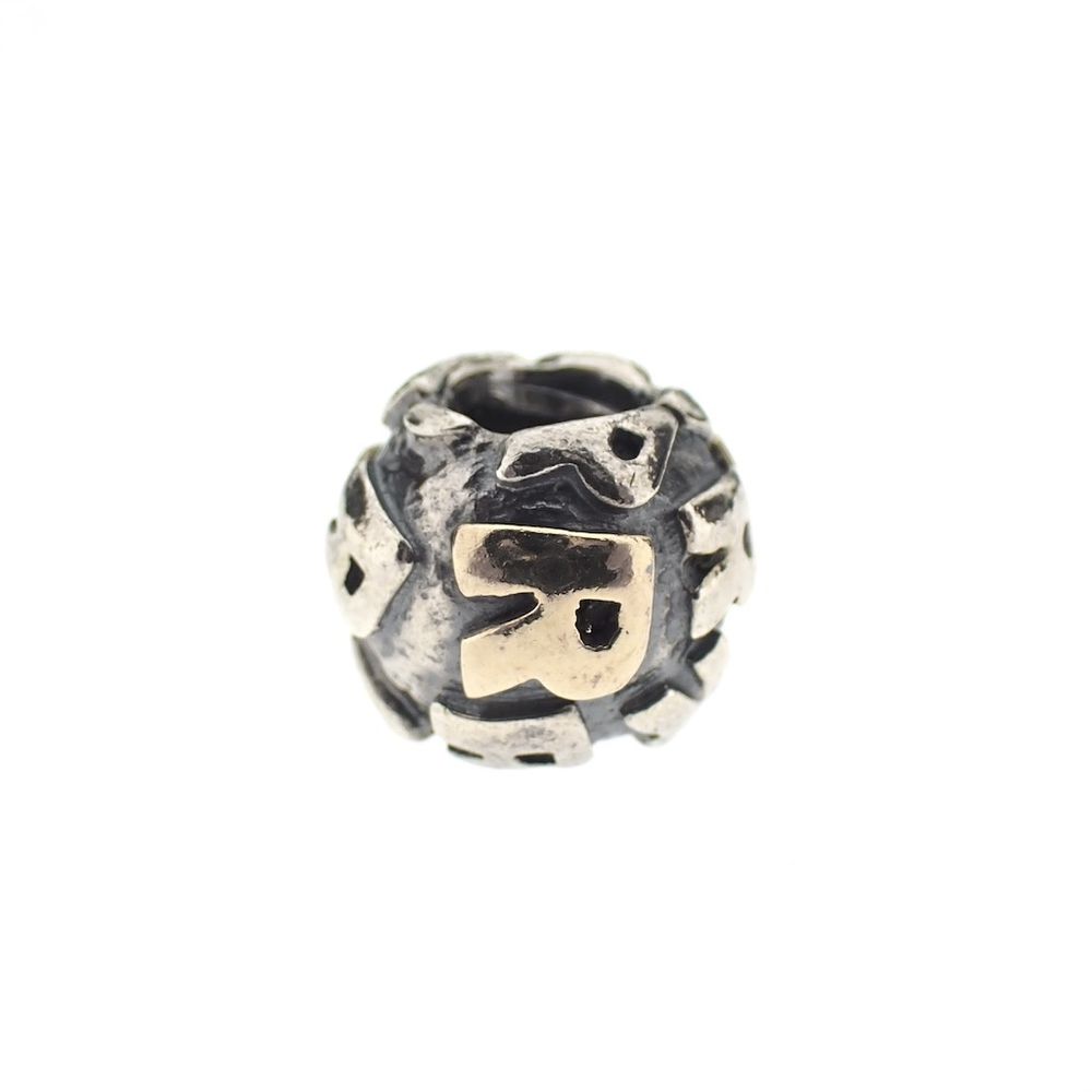 Pandora charm; Silver with gold; Letter R