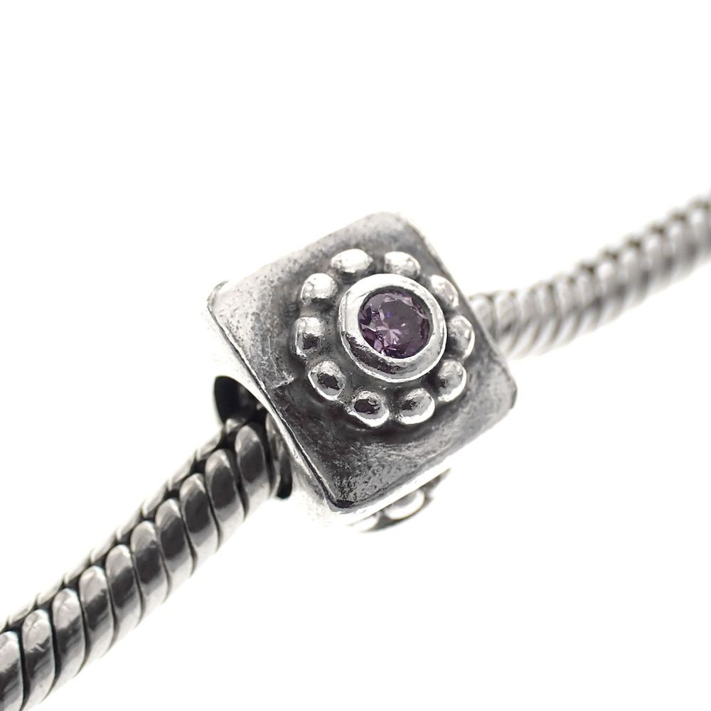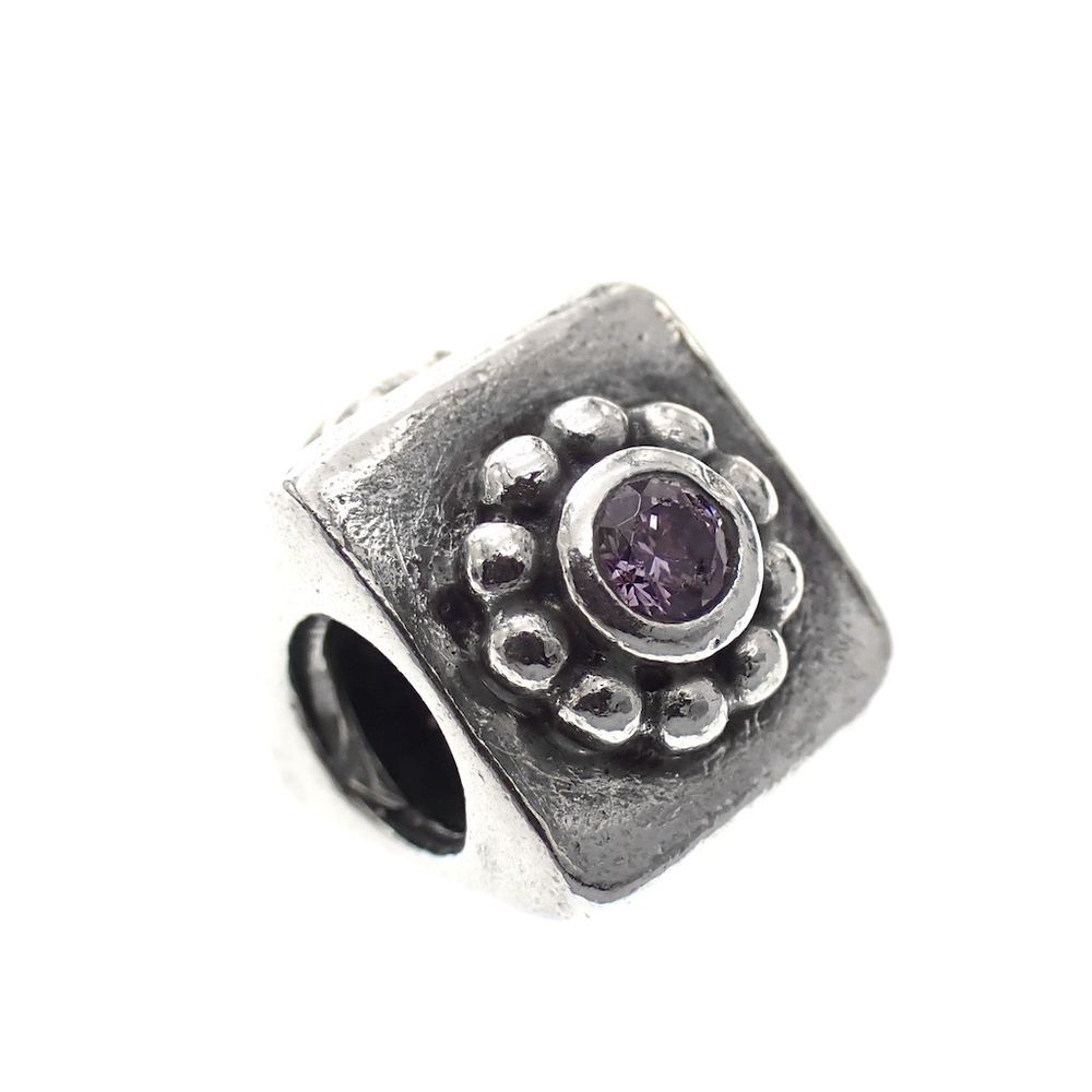 Pandora charm; Silver; Zirconia Flower Amethyst