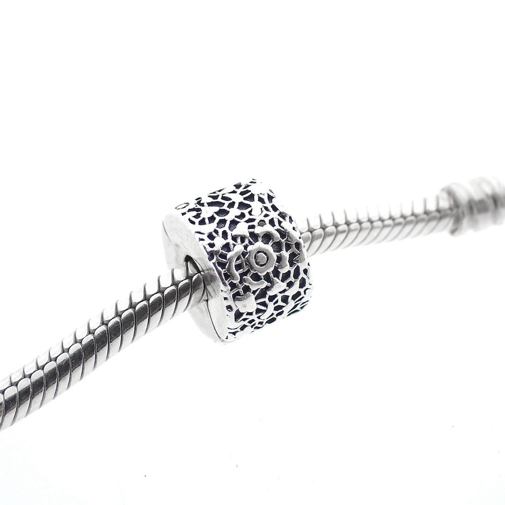 Pandora clip charm; Silver; Lace
