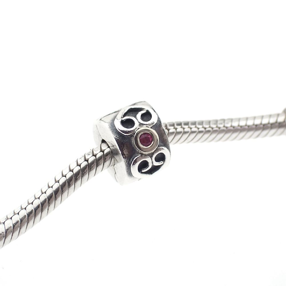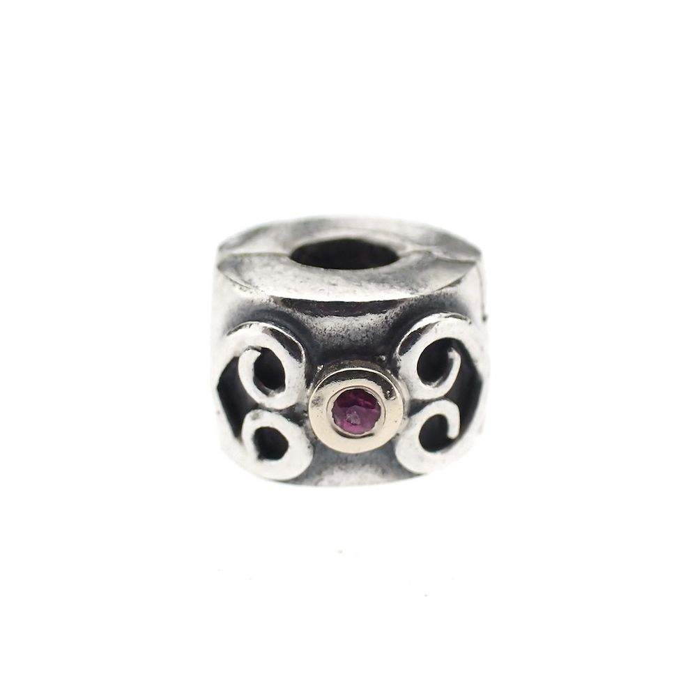 Pandora clip charm; Silver with gold; Double Heart Pink Sapphire