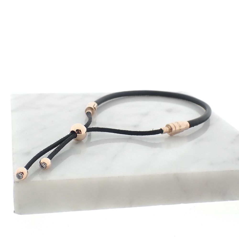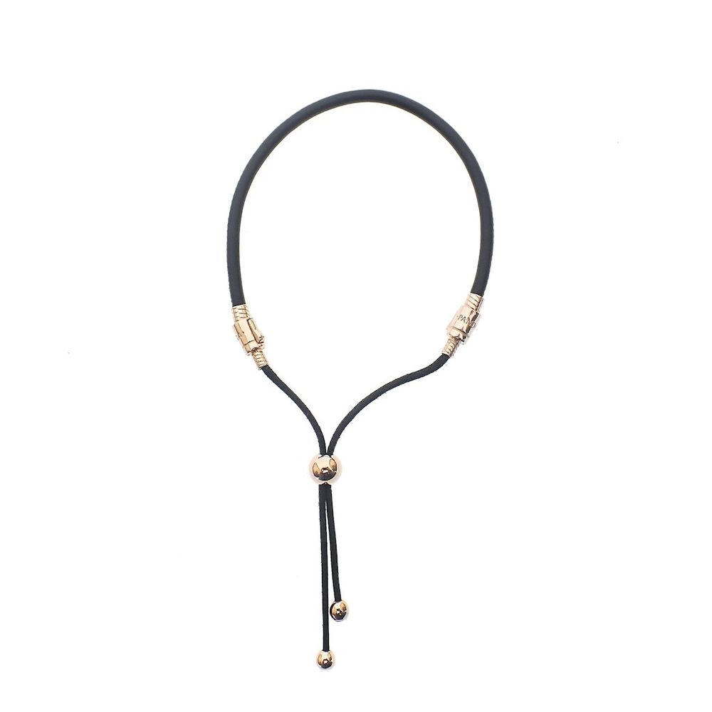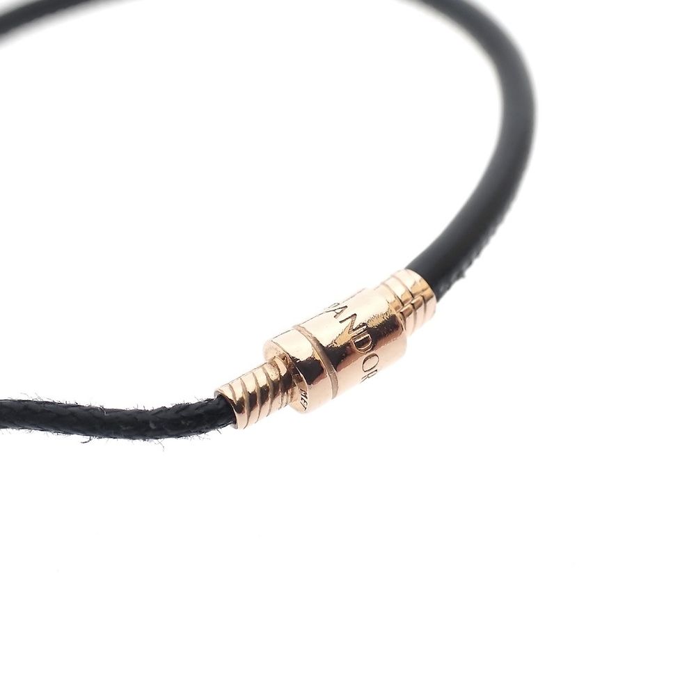 Pandora Moments; Black sliding bracelet; Rose gold plated