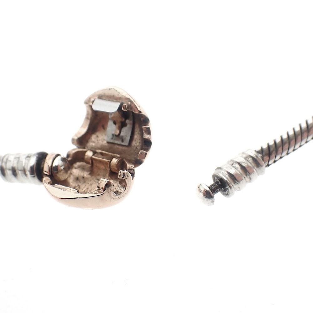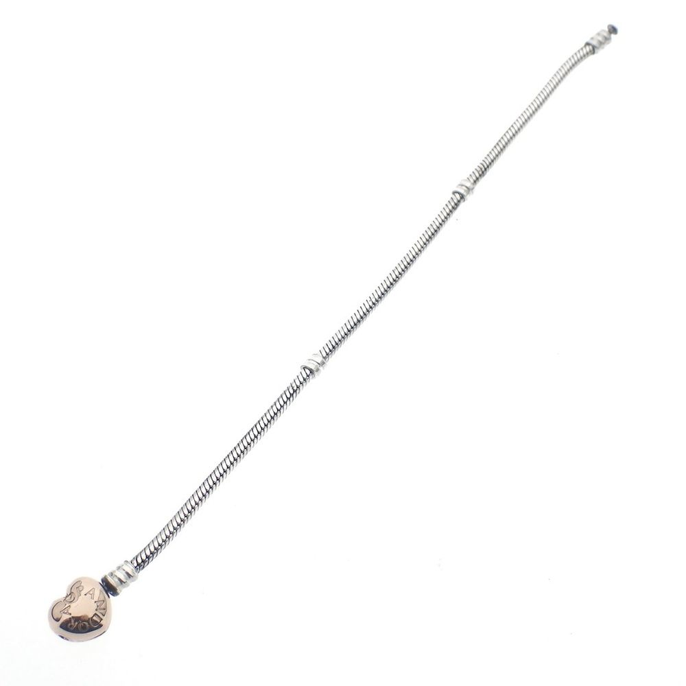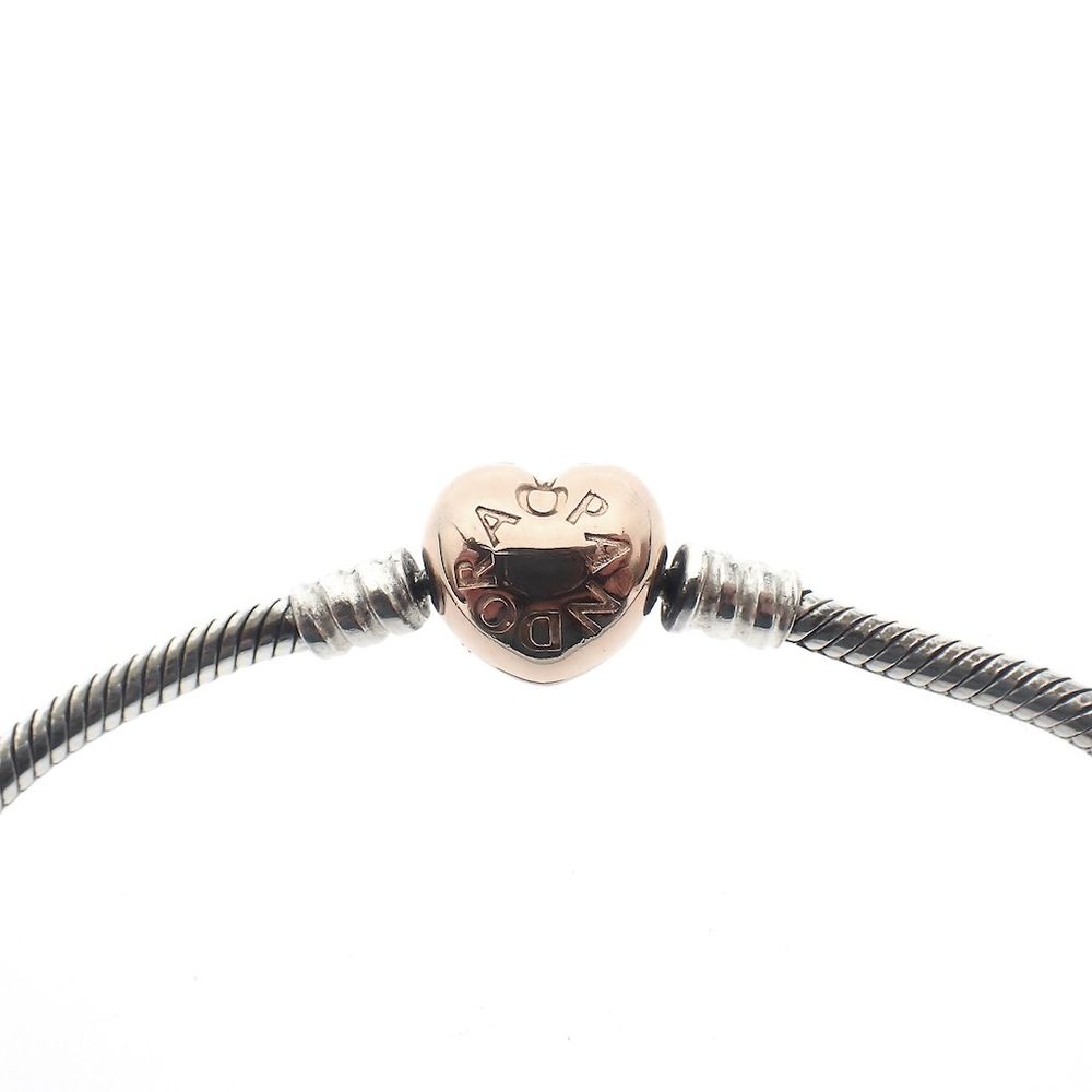 Pandora Moments bracelet; Silver with rose gold-plated clasp; Heart and snake chain | 19.5 cm