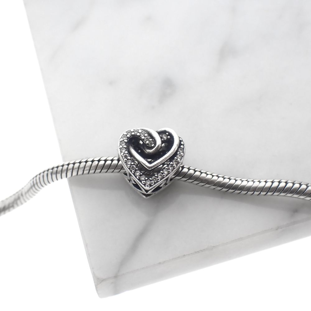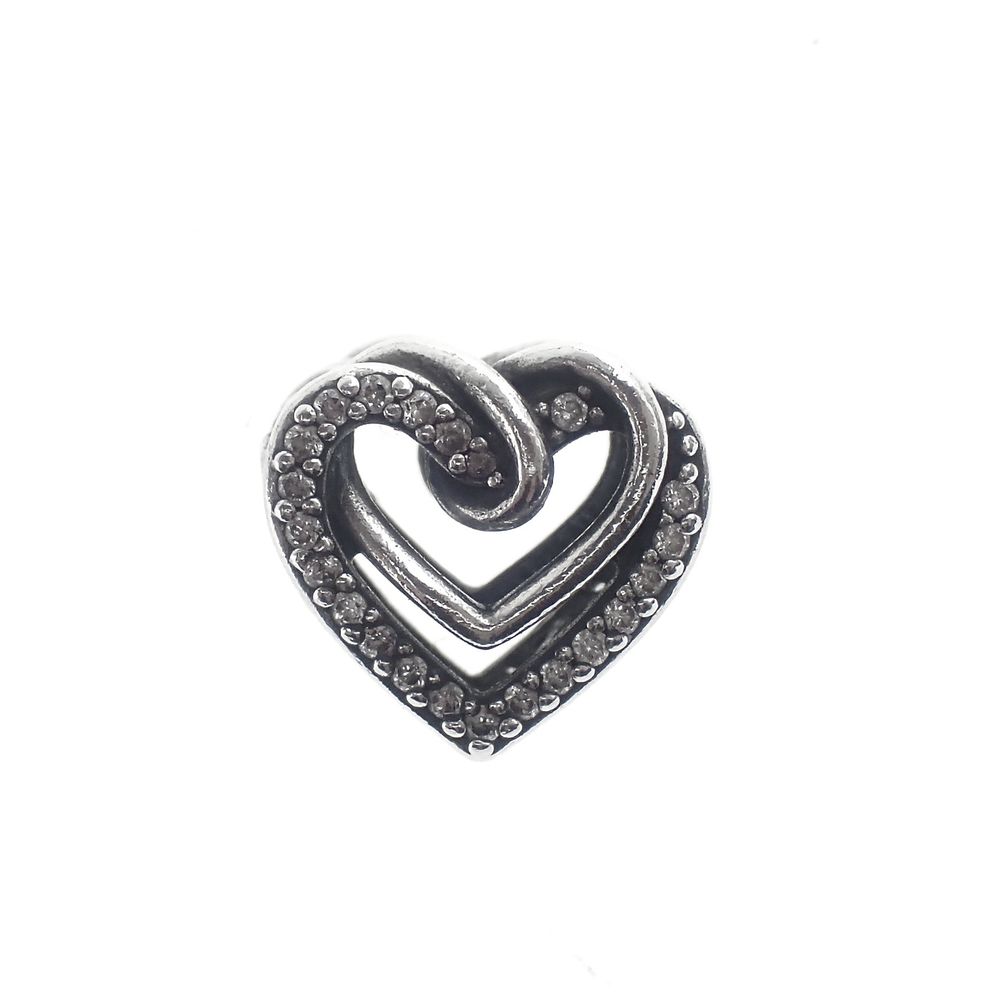 Pandora Moments charm; Silver; Sparkling Entwined Hearts