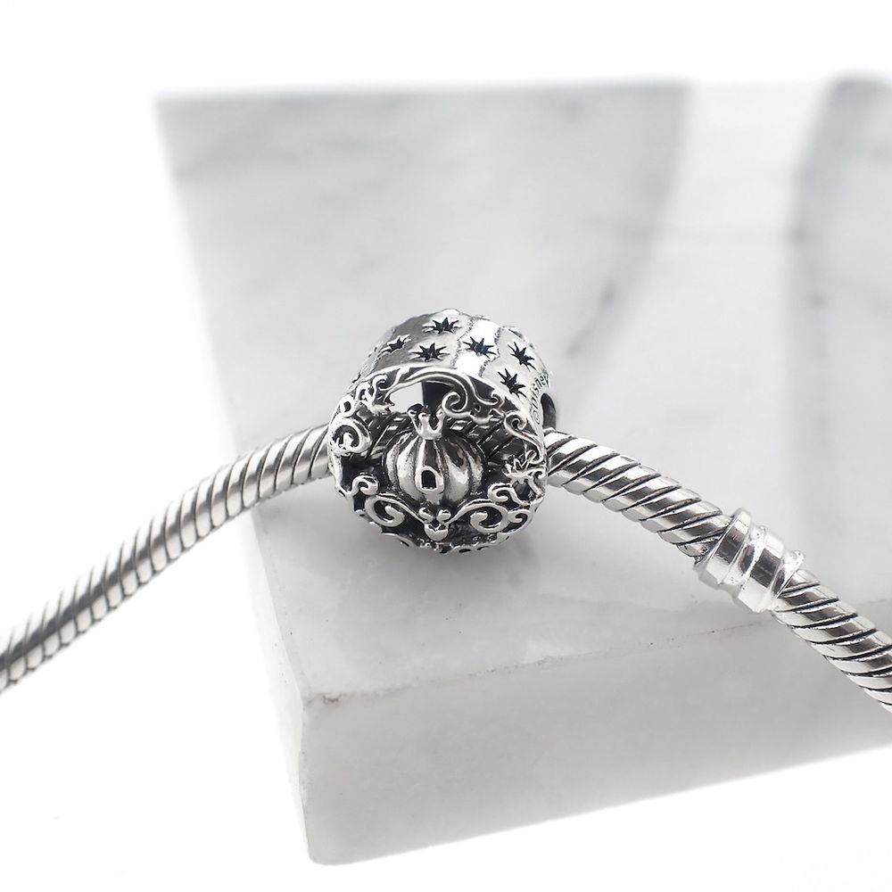 Pandora x Disney charm; Silver; Open Cinderella Midnight Pumpkin