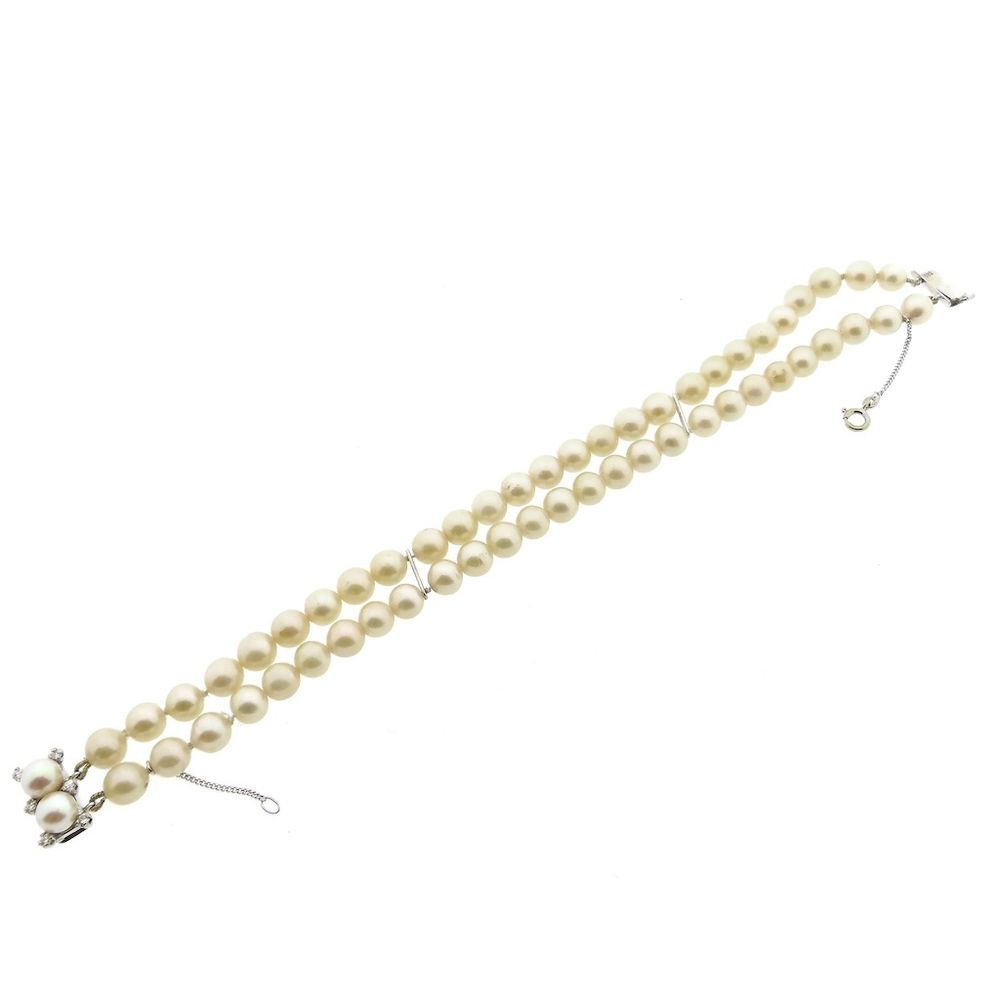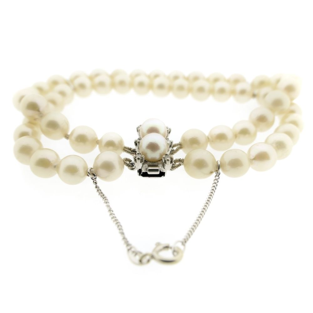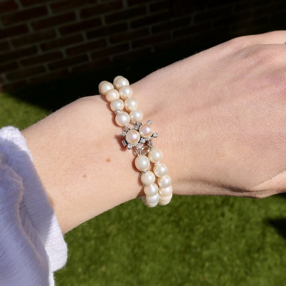 Pearl bracelet with white gold clasp and 0.18 ct. diamond | 20.5 cm