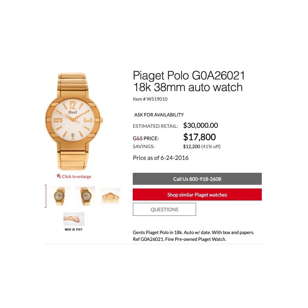Piaget Polo Automatic; 18k gold men's watch