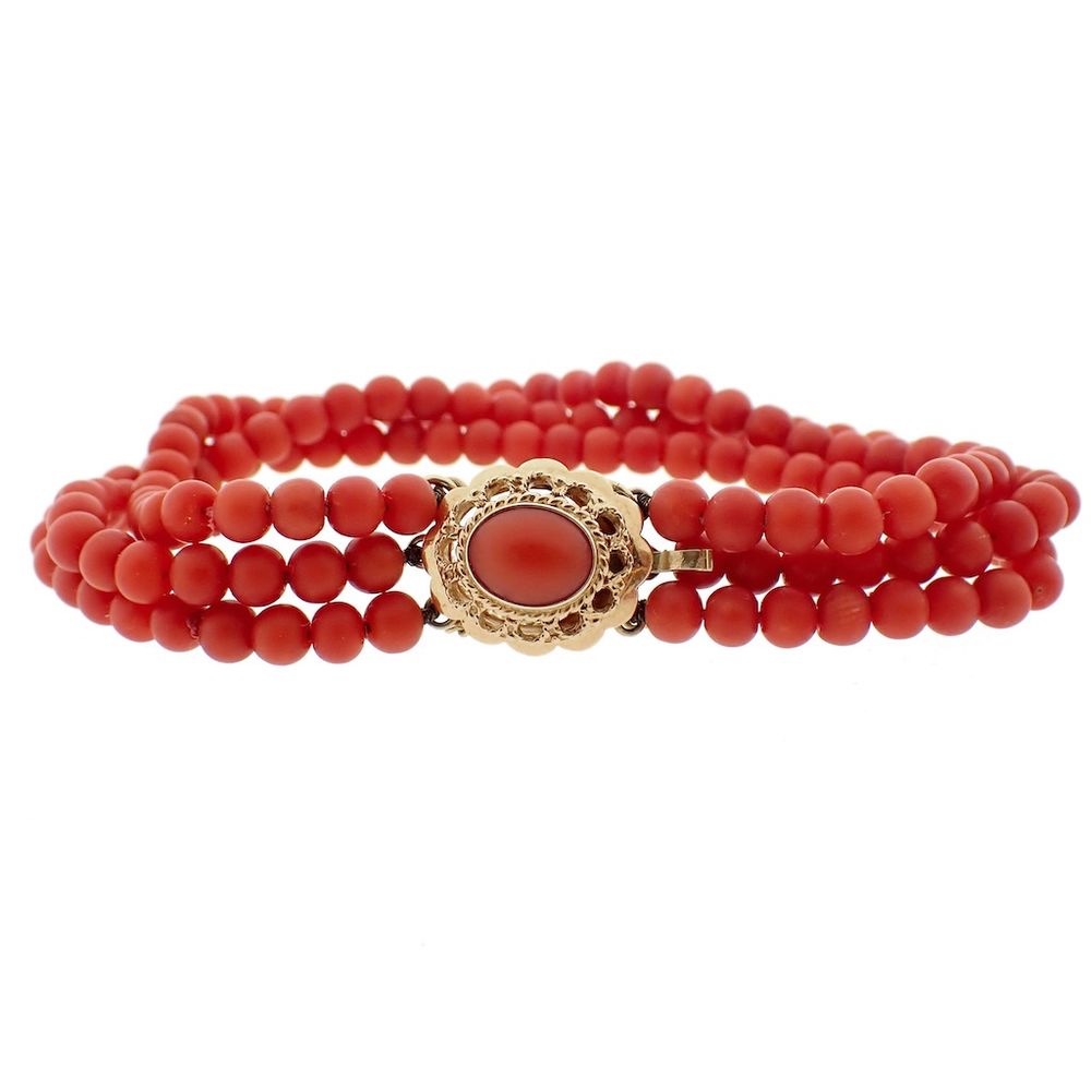 Red coral beads bracelet with gold clasp; Antique | Ø 60mm