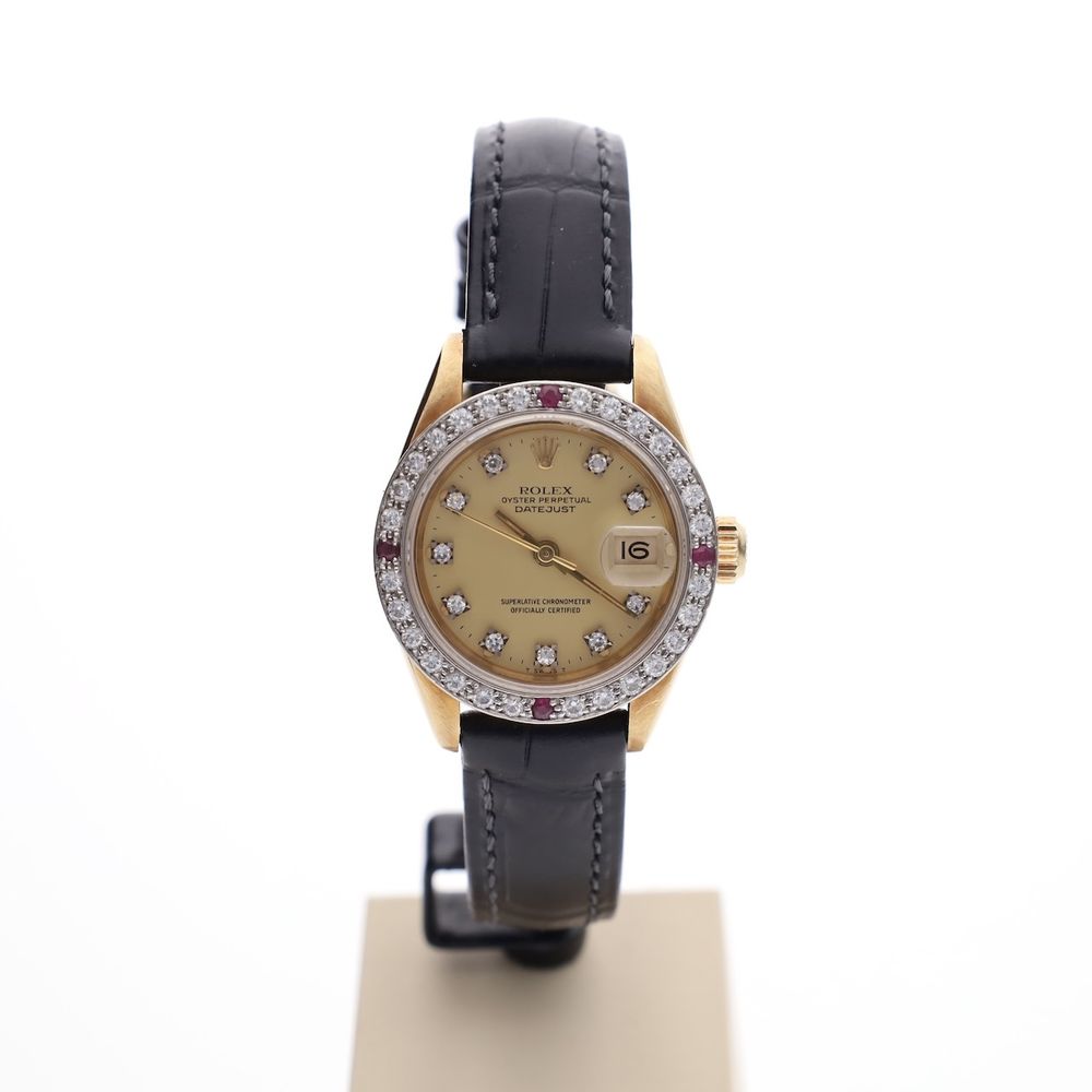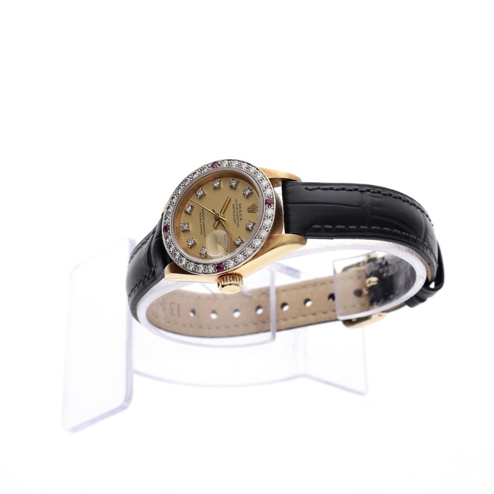 Rolex Datejust 26mm 69178; 18k gold women's watch with diamonds and rubies