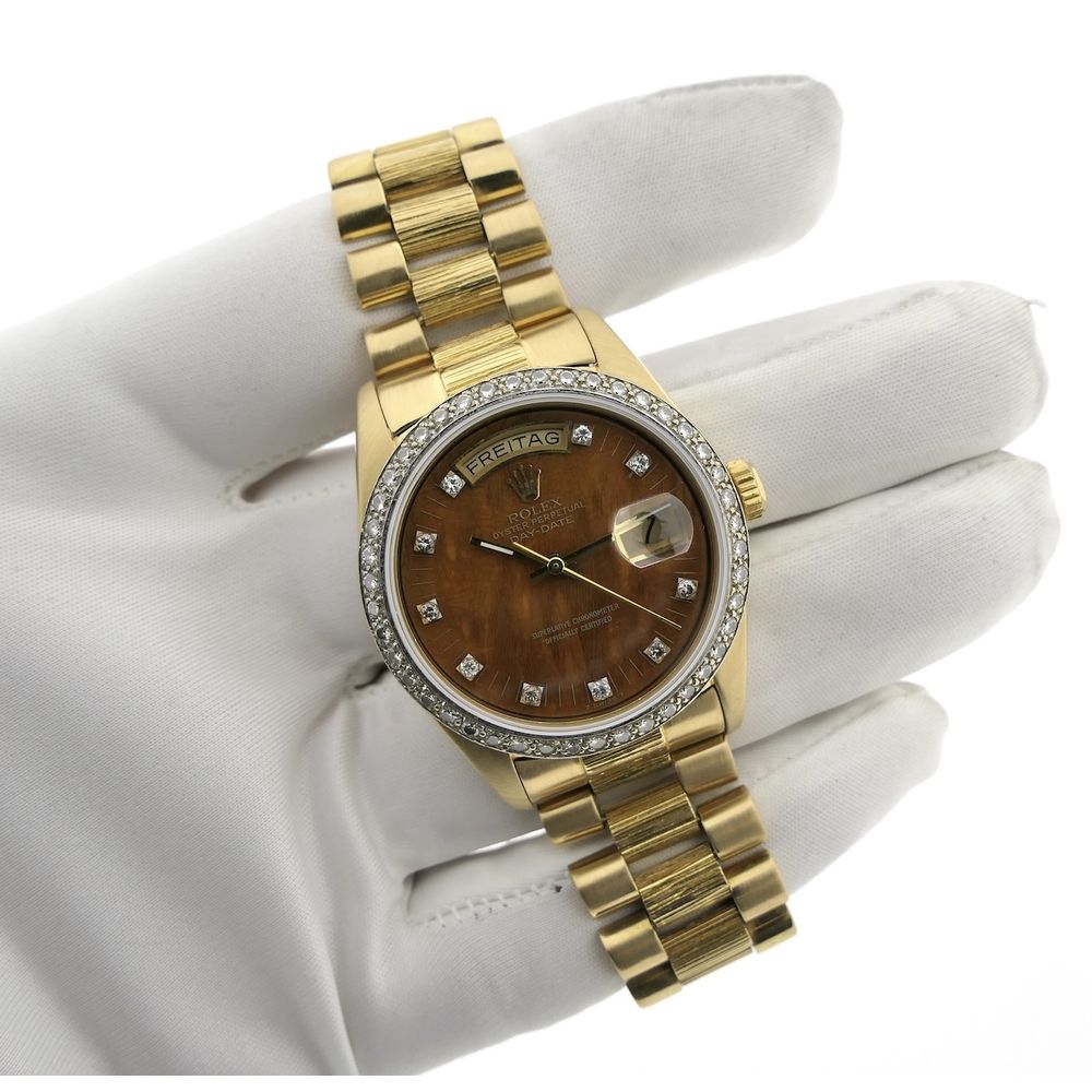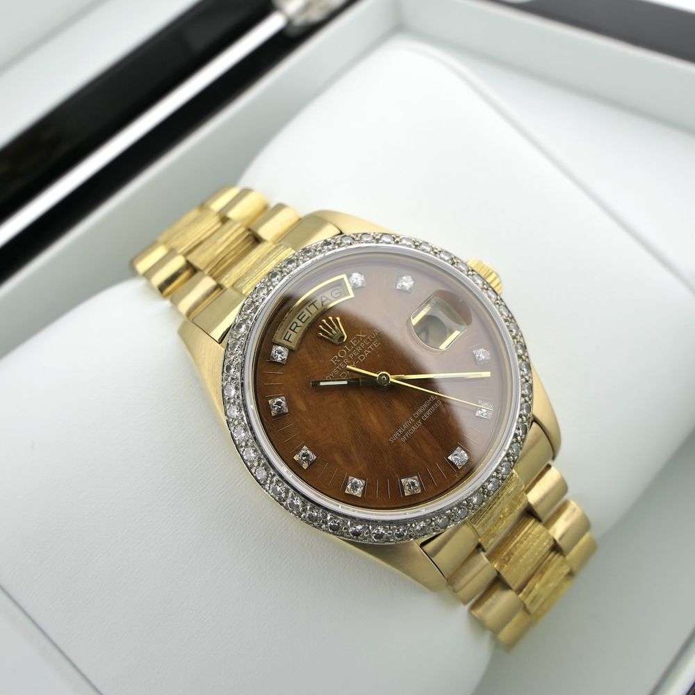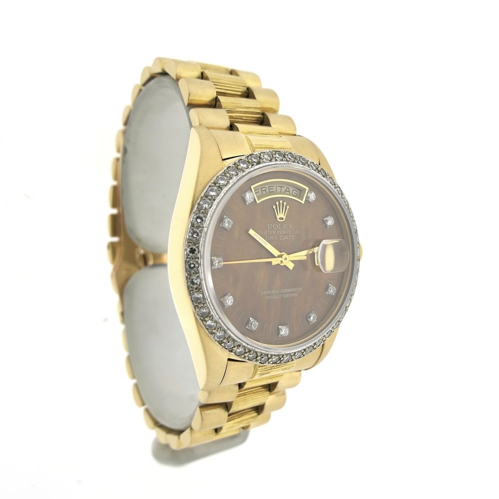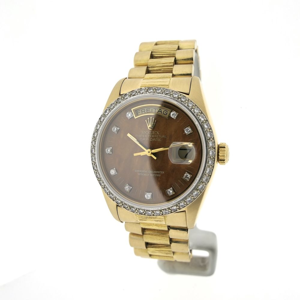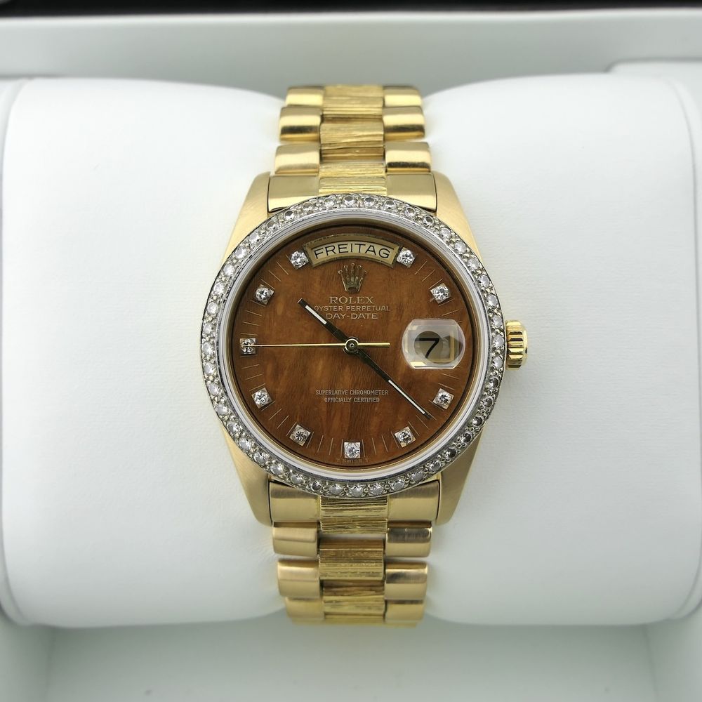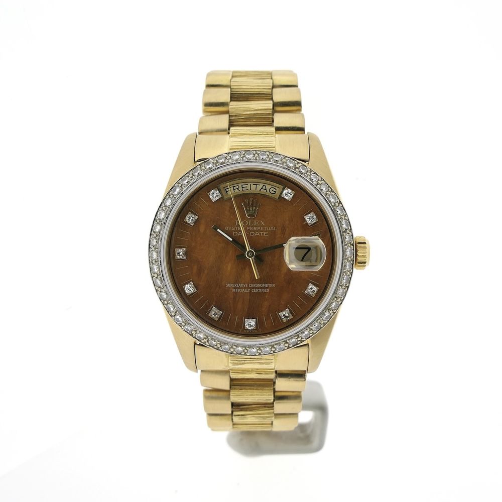 Rolex Day-Date 'Wood Dial' 18038; 18k gold men's watch with diamonds