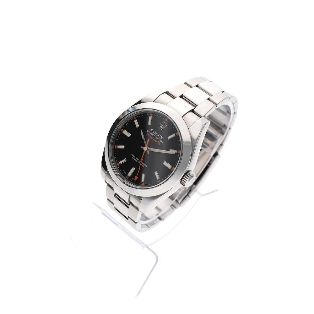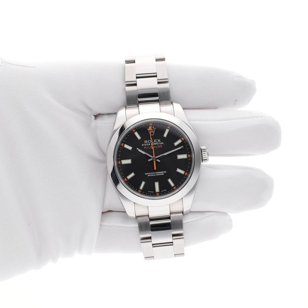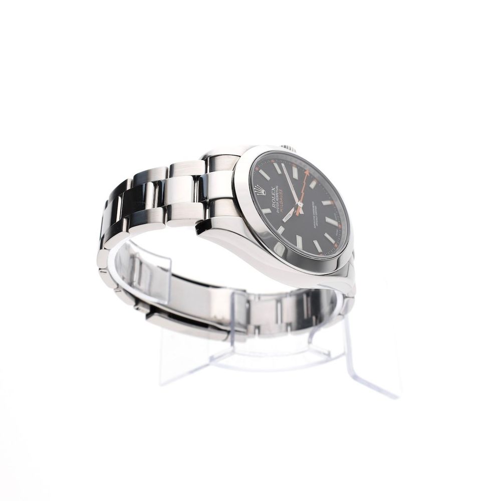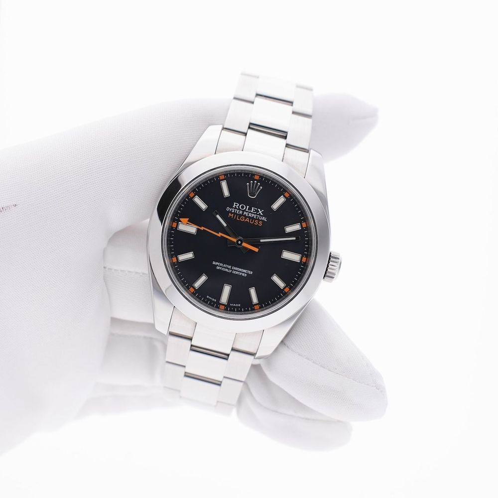 Inside, it operates the automatic Rolex caliber 3130, a high-quality Rolex manufacture movement known for its reliability and precision. A solid technical foundation that perfectly matches the robust character of the Milgauss.