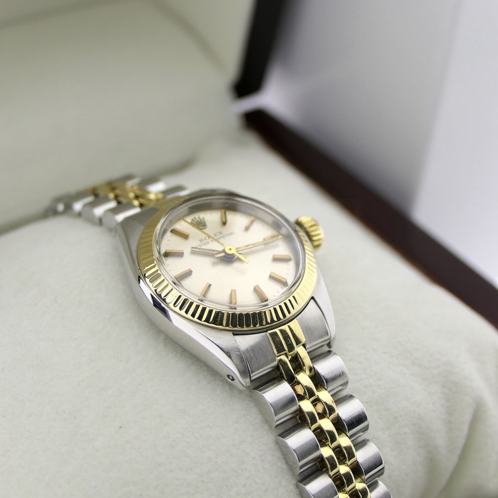 Rolex Oyster Perpetual 6719; Vintage 18k. goud/stalen dames horloge