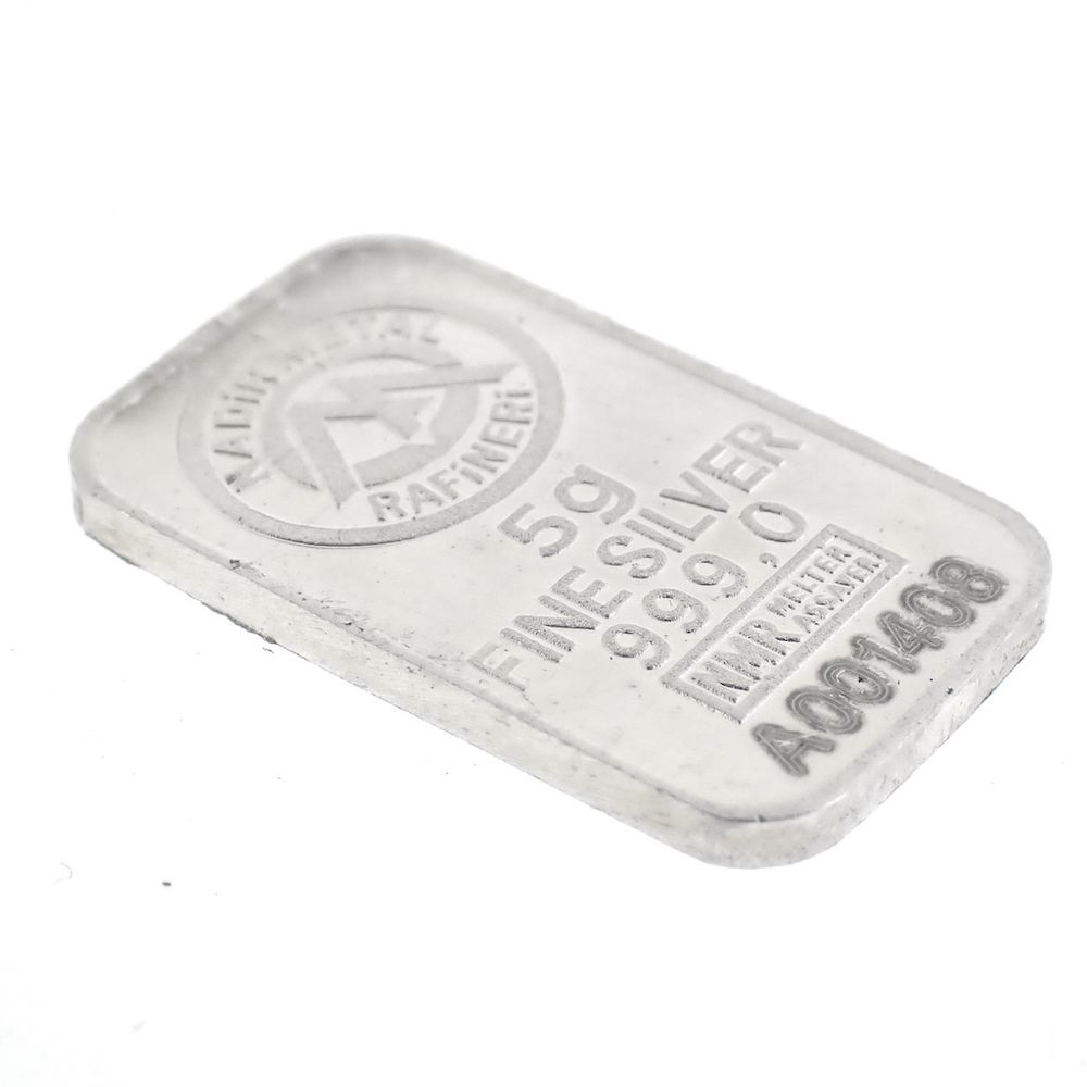 Silver bar 5 grams 999.0 pure silver; Nadir Metal Rafineri