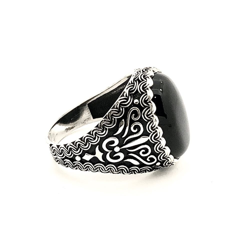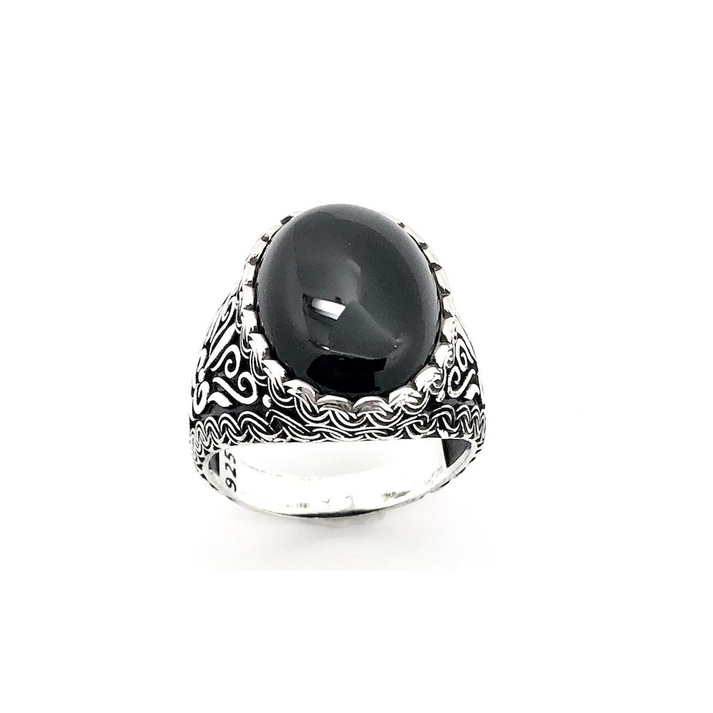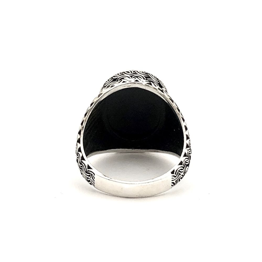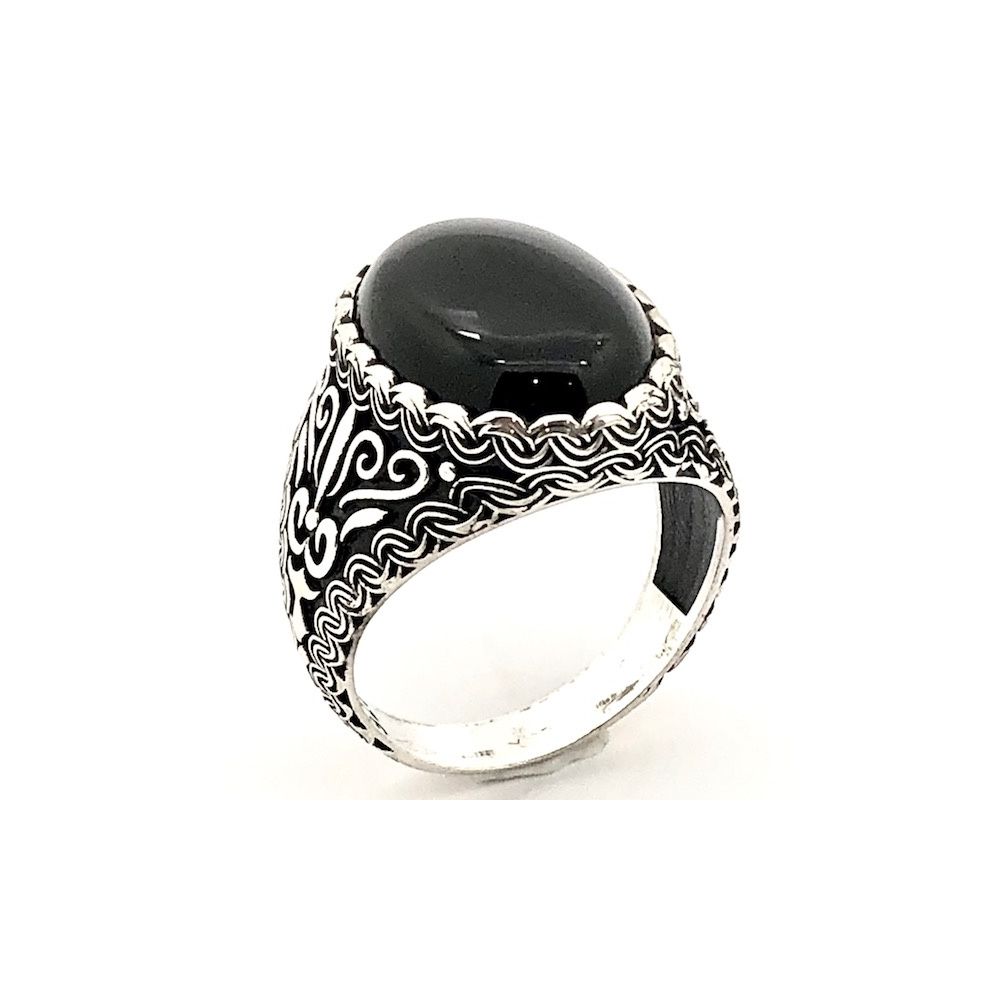 Silver bohemian (signet) ring with onyx stone