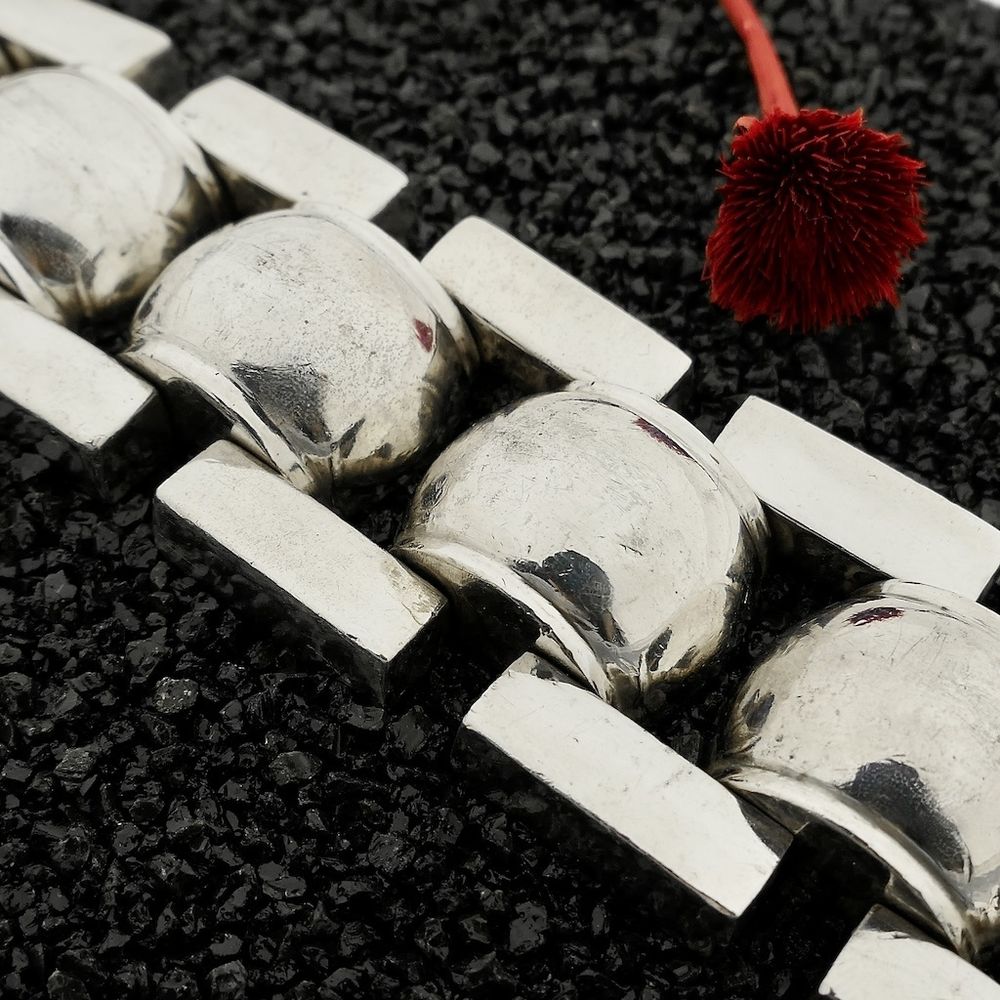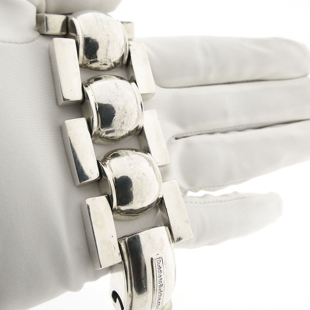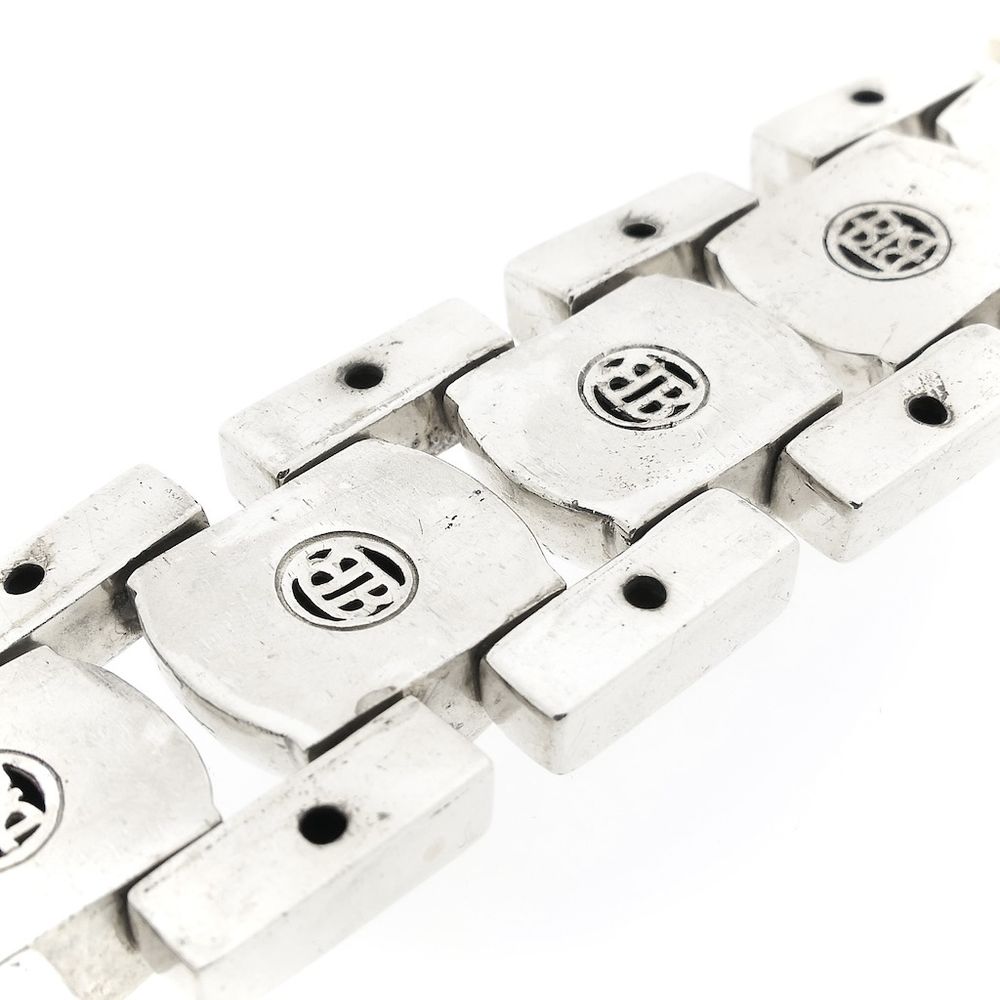 A robust silver men's bracelet from the Buddha to Buddha brand, from the "Batul" line. The bracelet is solid and has a link width of 32.9 mm. It pairs well with other BTB jewelry. This timeless piece closes with a box clasp and is crafted from 925/1000 sterling silver.