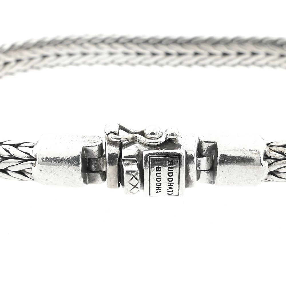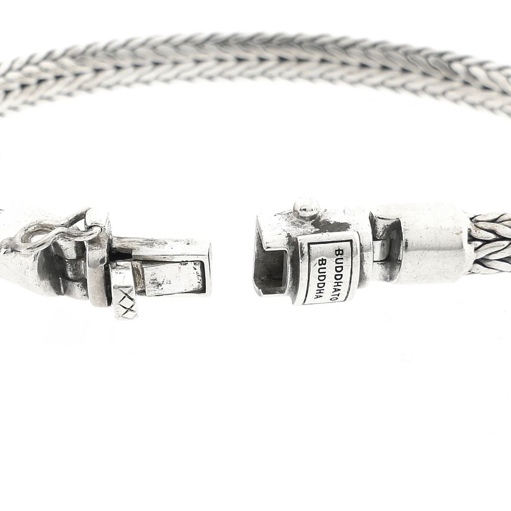 Silver bracelet from the brand Buddha to Buddha from the 'Ellen XS' line. The bracelet is solid and has a link width of 6.2 mm. The bracelet pairs well with other BTB jewelry. This timeless piece fastens with a box clasp including a safety hook and is made from first-grade silver (925/1000).