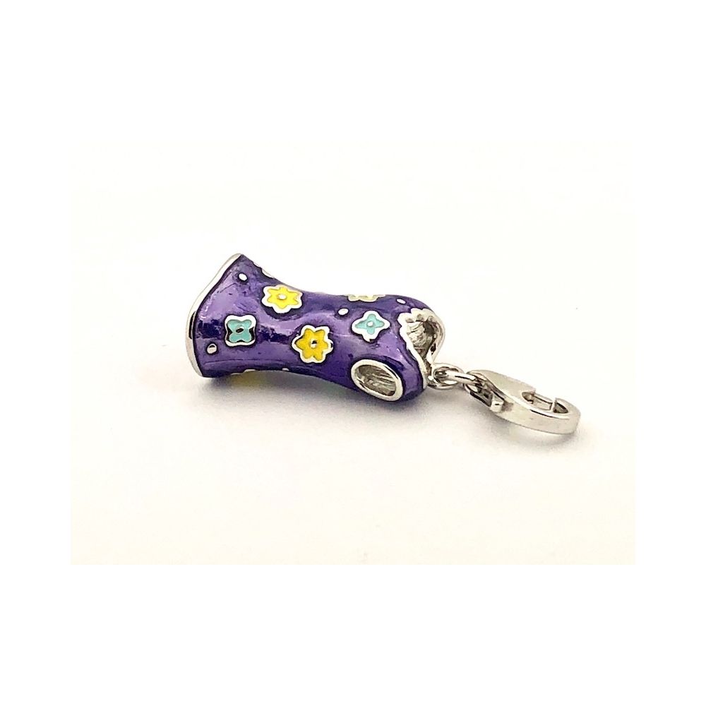 Silver charm/pendant of a dress; enameled
