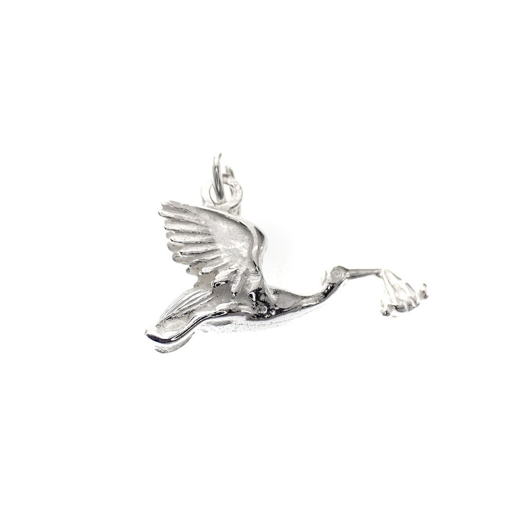 Silver charm; Stork with baby