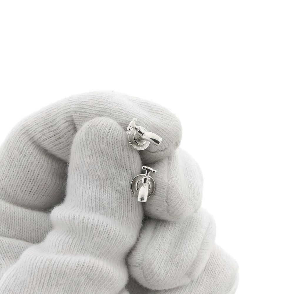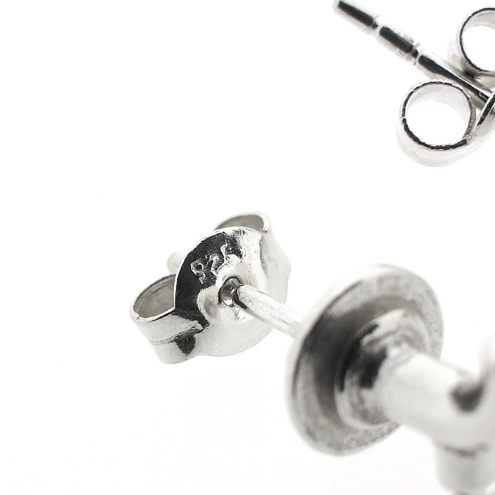 A set of silver stud earrings depicting a crane. The earrings are made of sterling silver (925/1000).