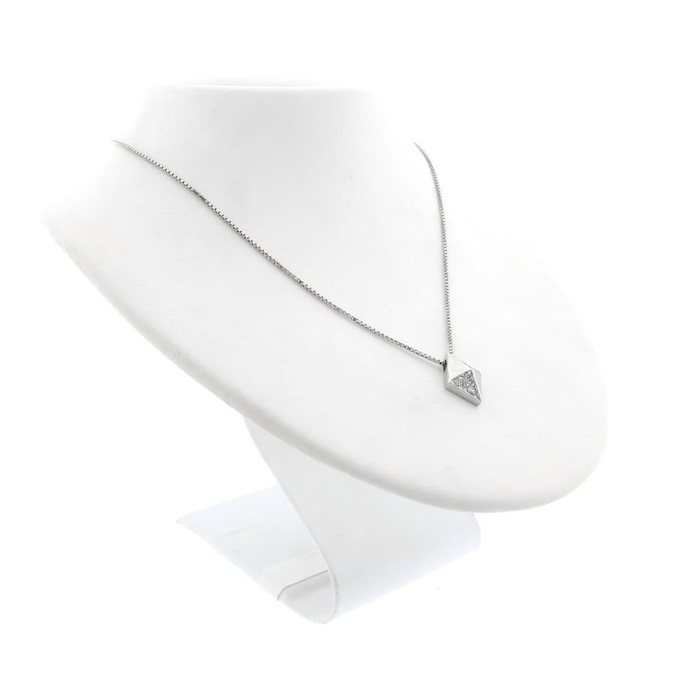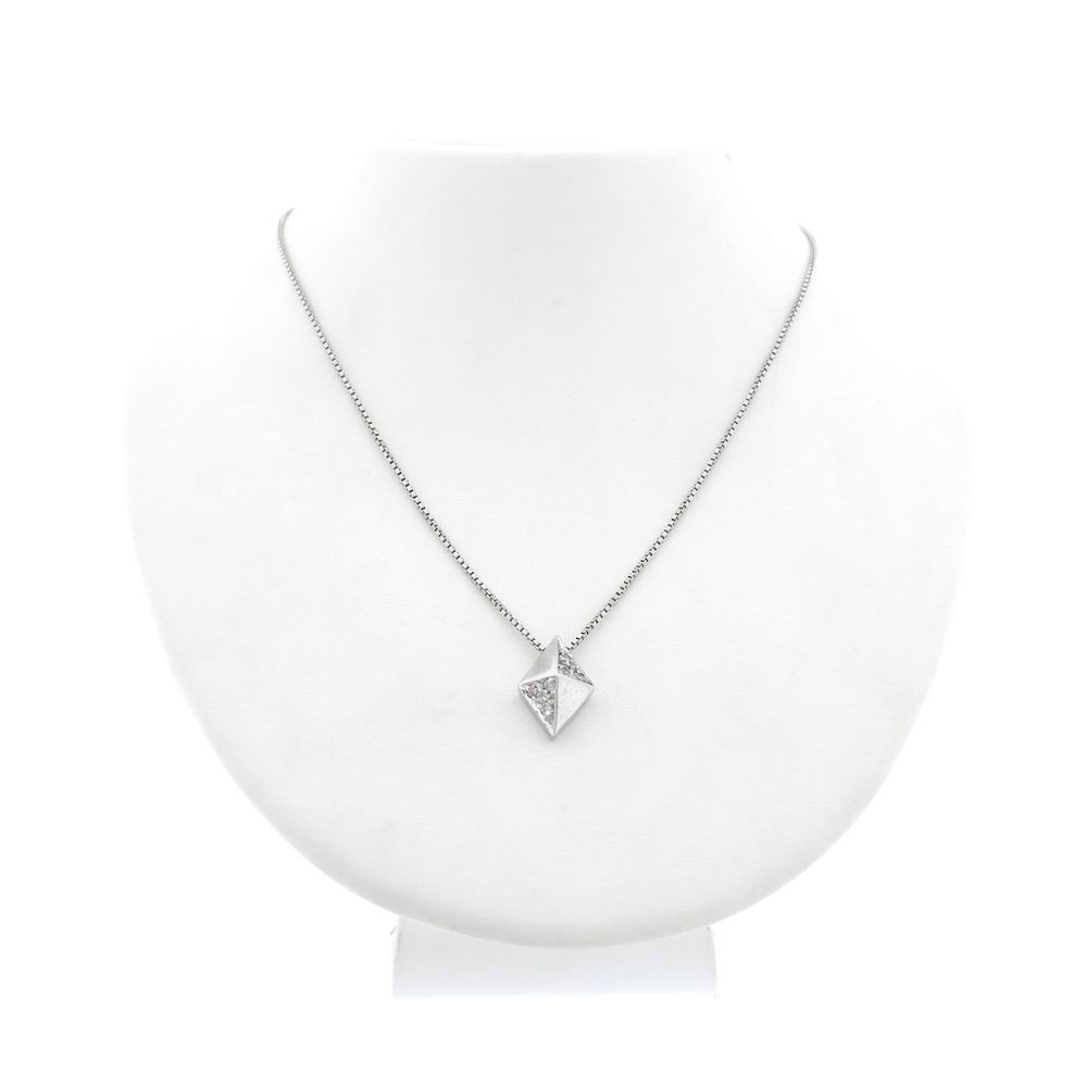 Silver diamond pendant set with cubic zirconia stones. The cubic zirconia stones are placed diagonally, giving the pendant depth. The pendant is made of sterling silver (925/1000).