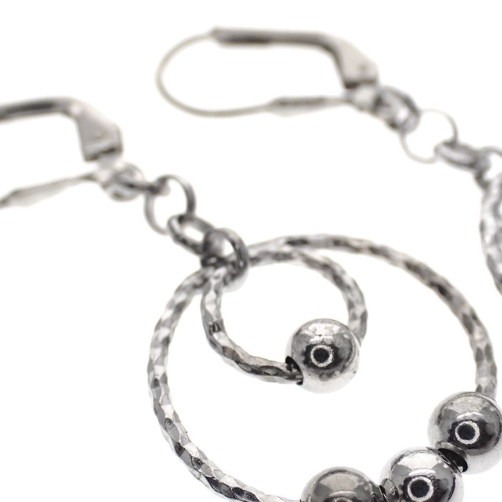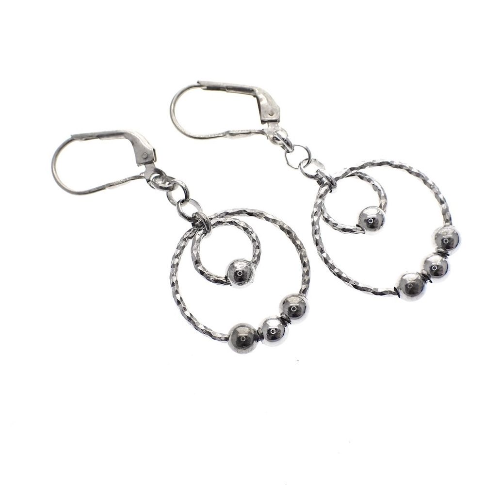 Silver earrings with two rings and balls | Ø 18 mm
