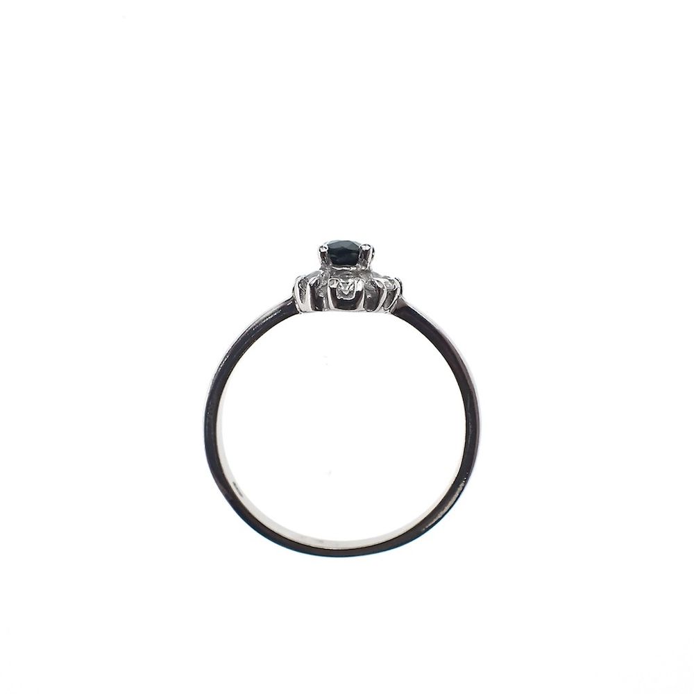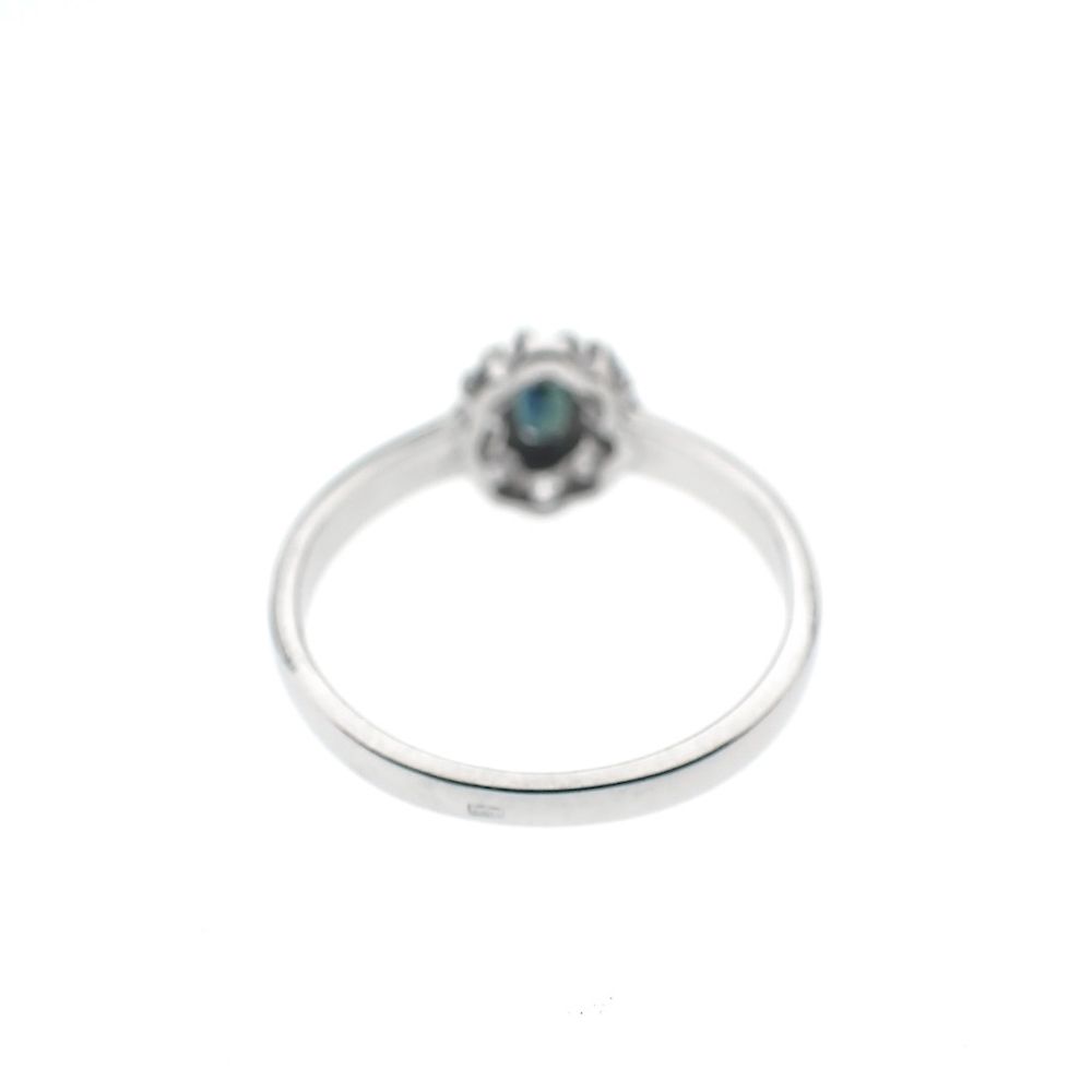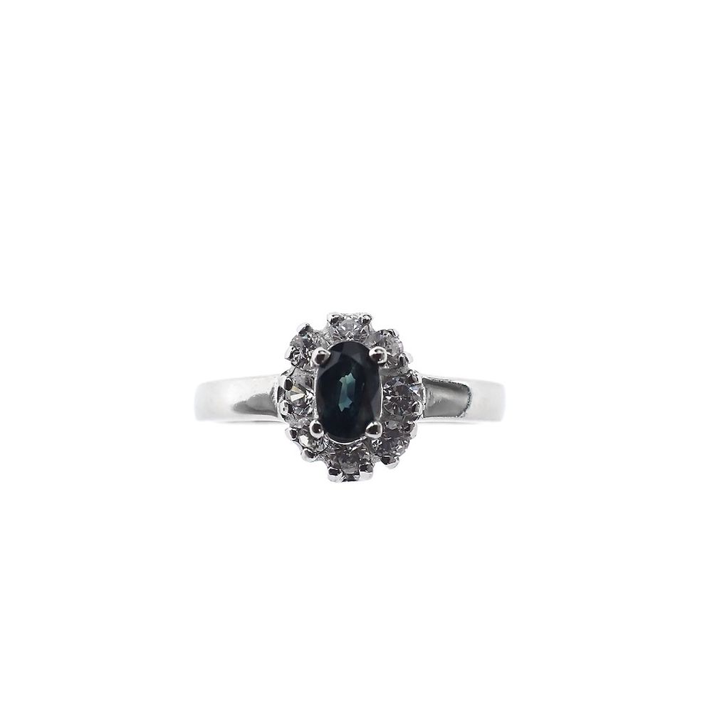 Silver entourage ring with blue zirconia