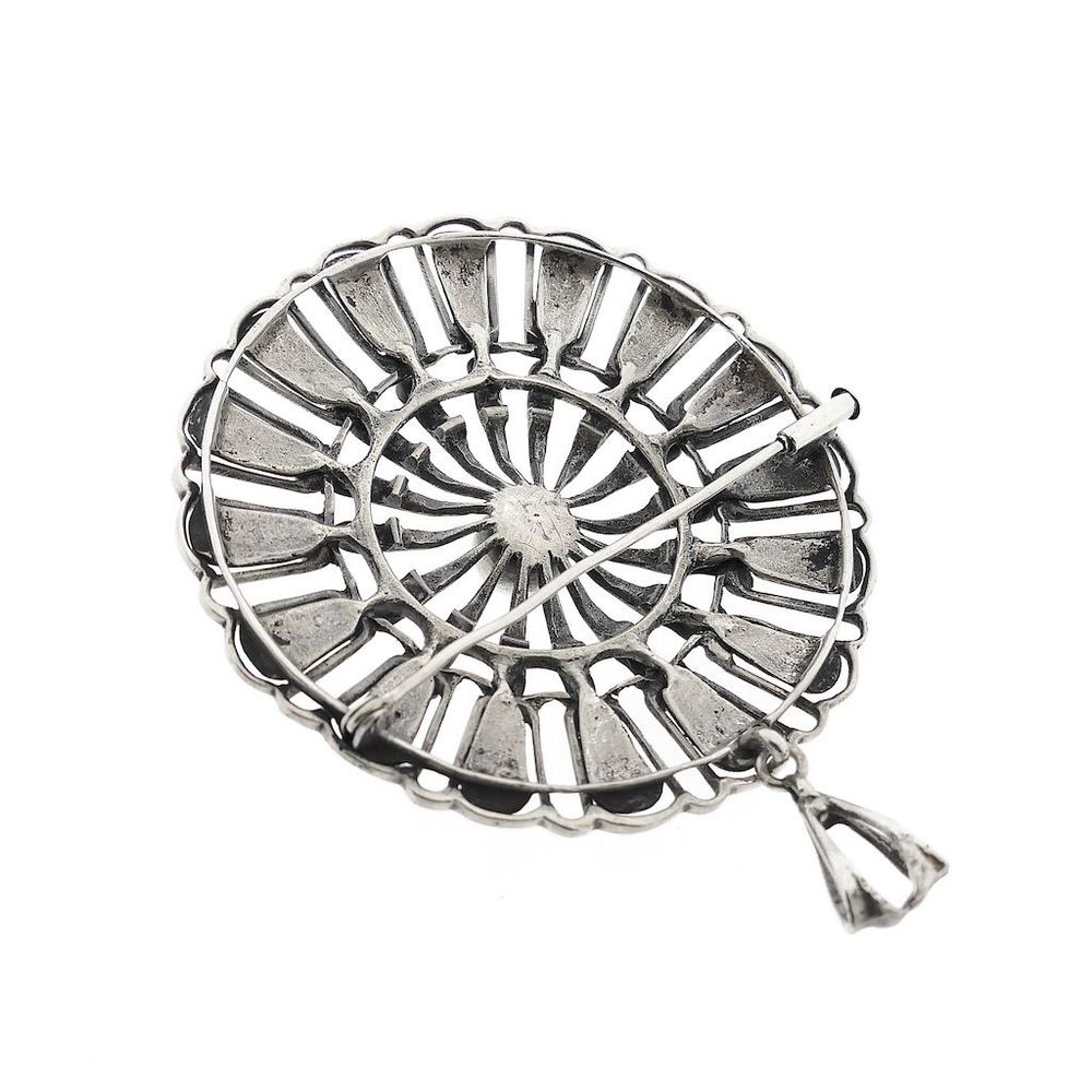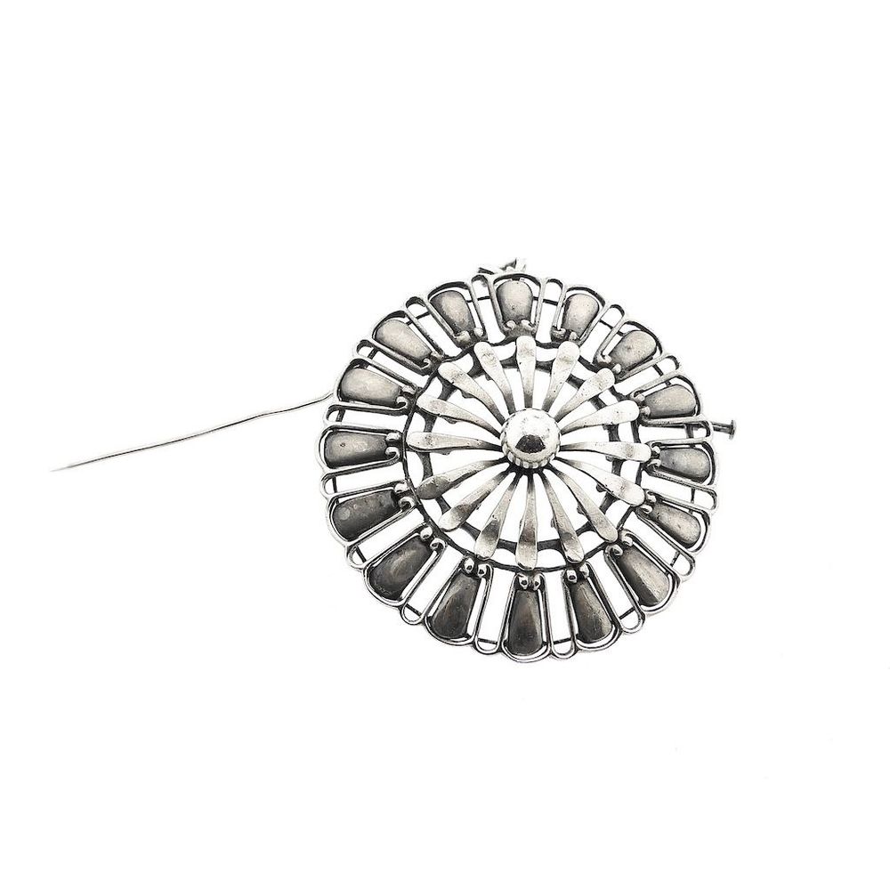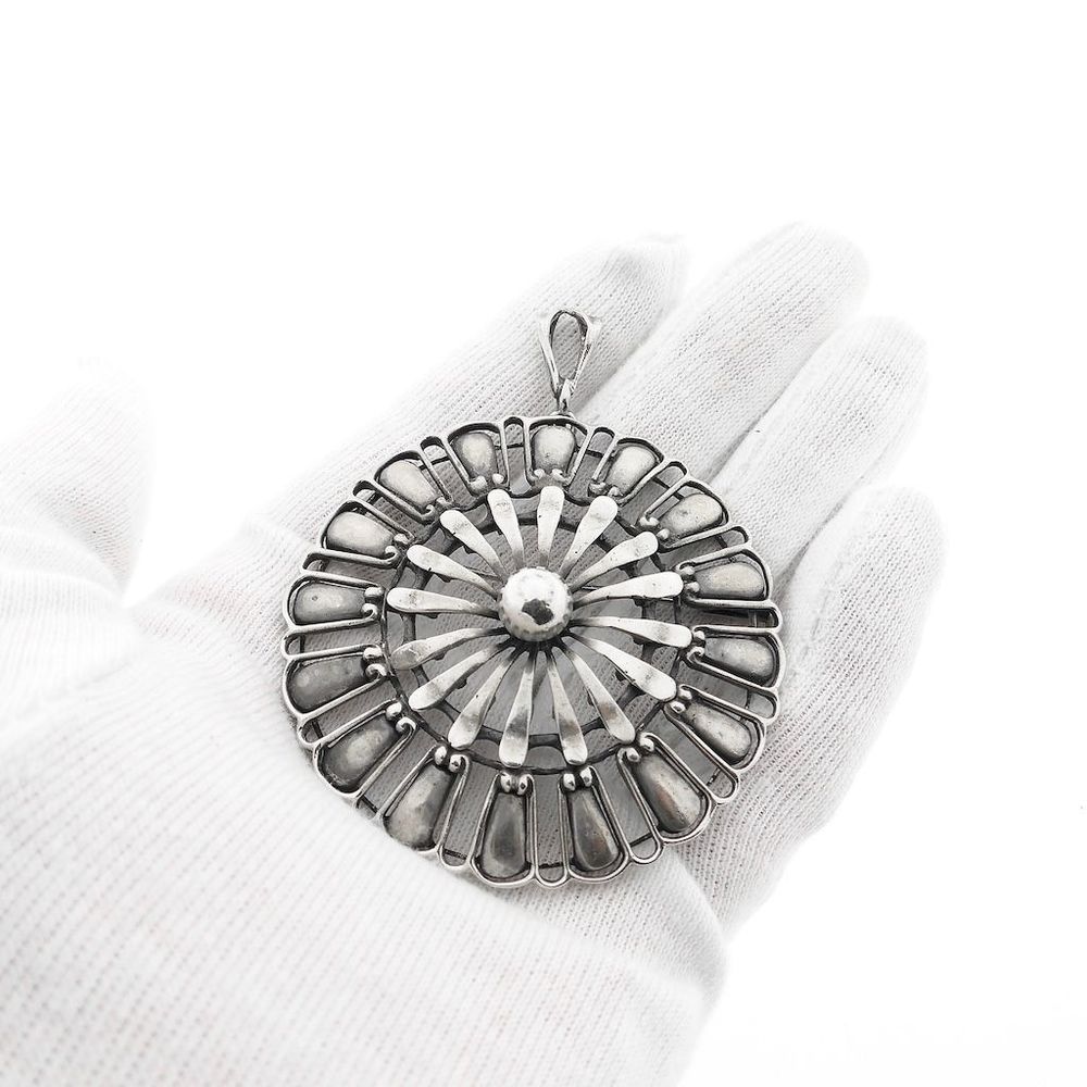 Silver brooch/pendant in Etruscan style with a richly detailed and symmetrical design. Thanks to its pronounced, large shape, this piece of jewelry can be worn by both men and women. The pendant is made of second grade silver (835/1000).